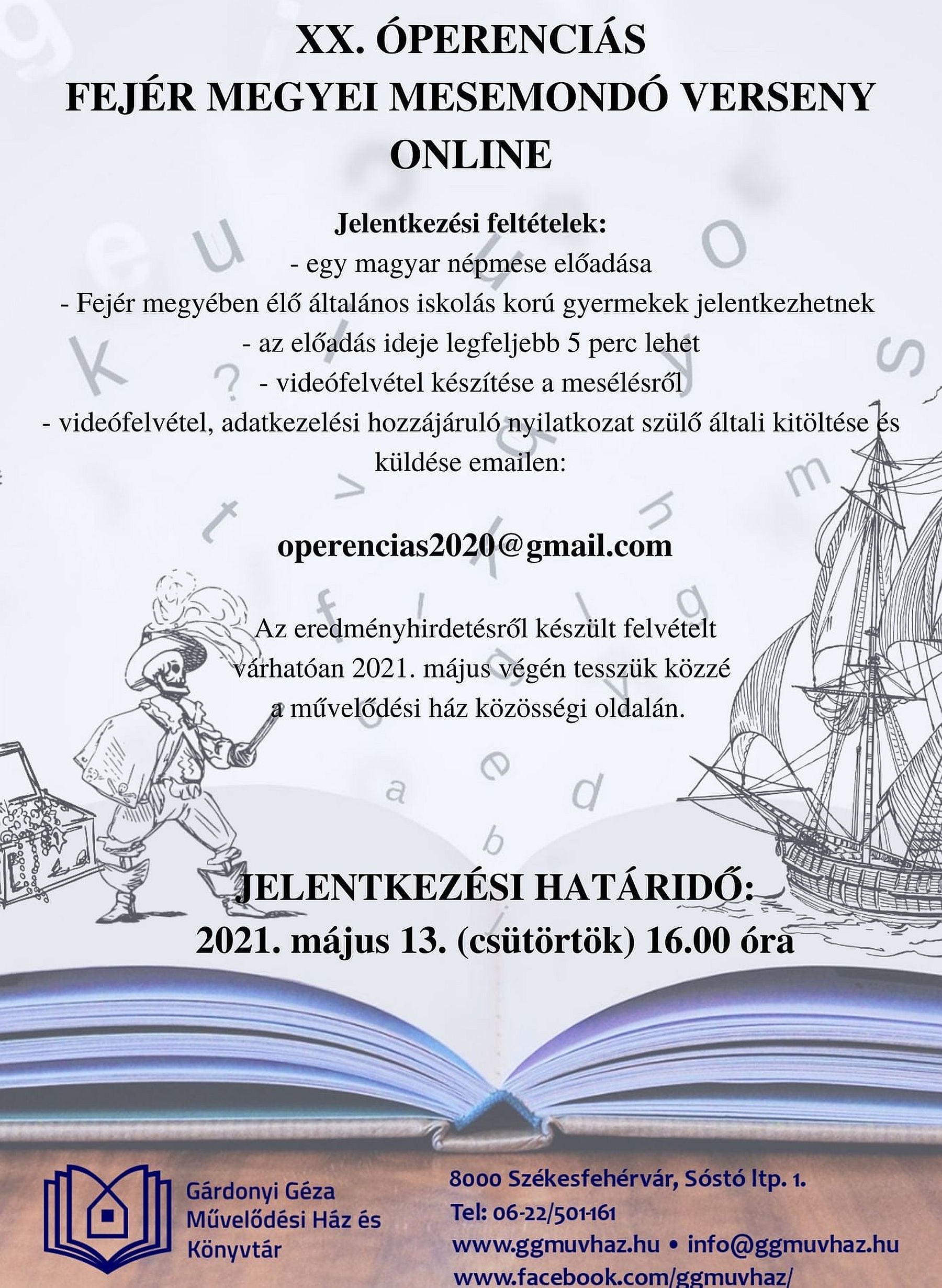 A mesélésről készült felvételt és a szülők által kitöltött adatkezelési hozzájáruló nyilatkozatot 2021. május 13-án, csütörtökön 16 óráig kell elküldeni az operencias2020@gmail.com címre.