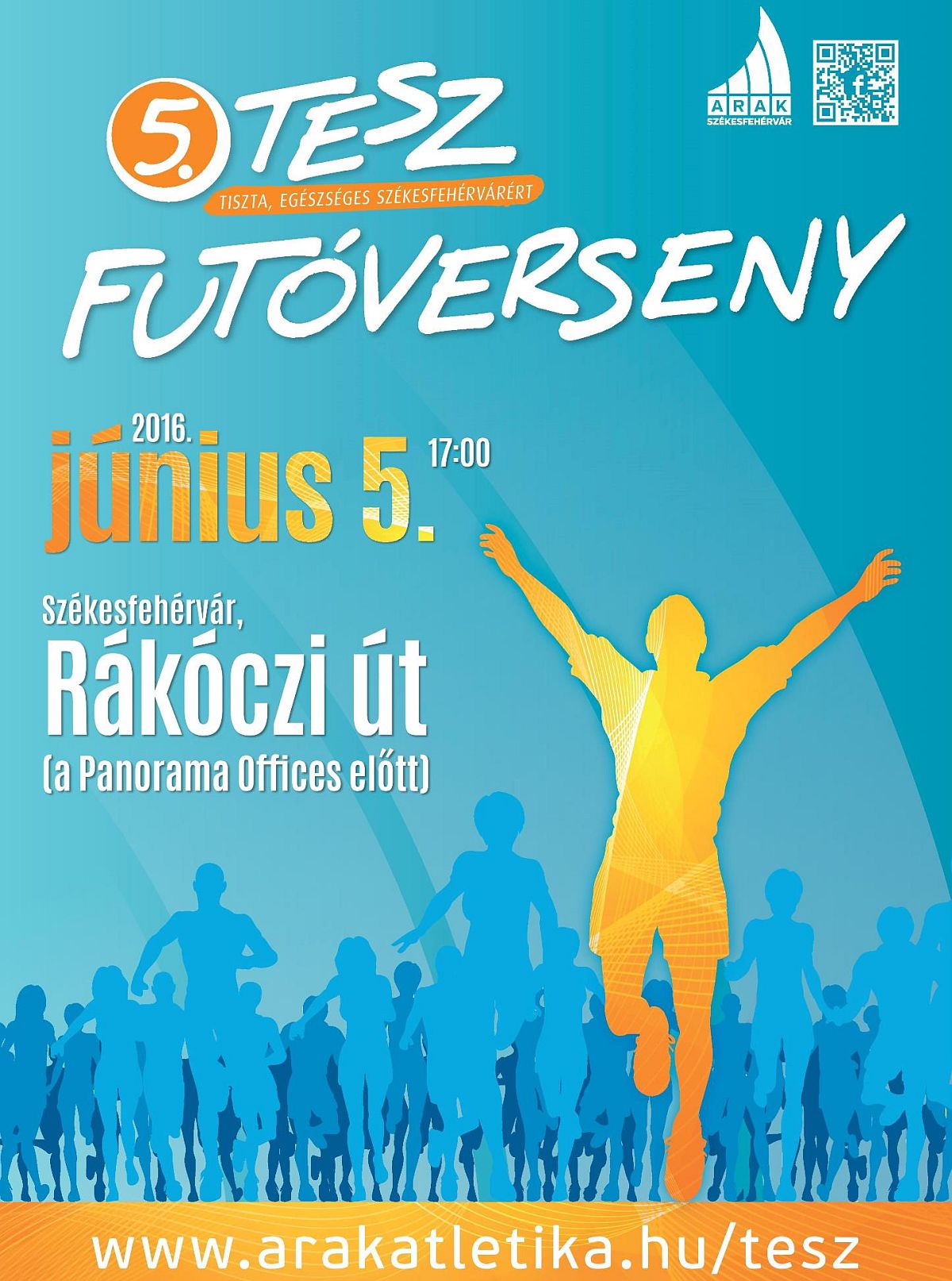 Az ARAK, Fehérvár Önkormányzata és a Depónia Kft. közös szervezésében megvalósuló V. TESZ futóverseny 2016. június 5-én, délután 17.00 órakor a megszokott helyszínről, a Panorama Offices irodaház elől indul majd. Érdemes előzetesen jelentkezni a versenyre: a május 5-ig tartó kedvezményes előnevezéssel élők speciális technikai futópólót és további ajándékokat kapnak.