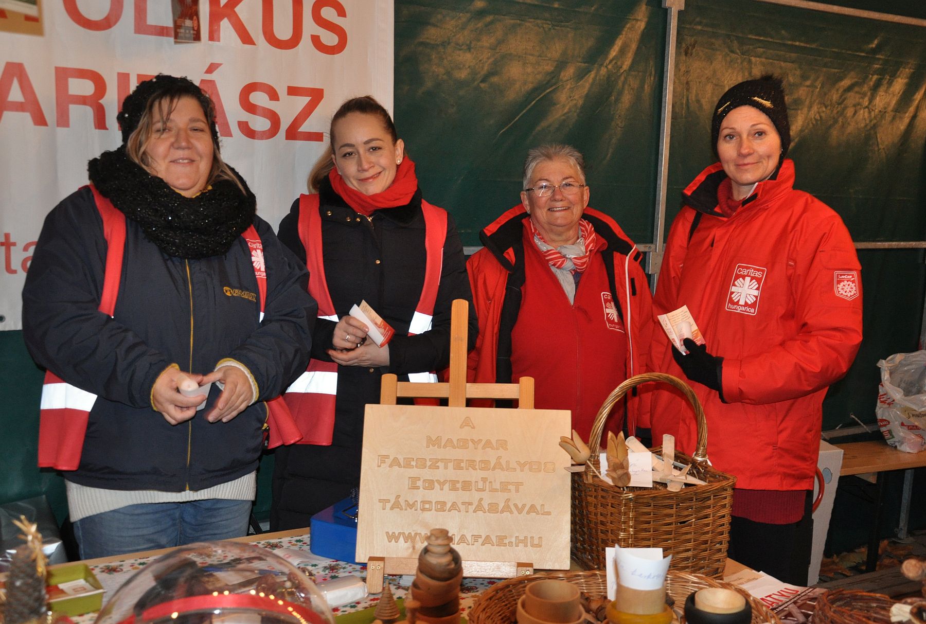 A Katolikus Karitász helyi, egyházmegyei szervezete az adventi udvar első traktusában, nagy zöld sátorban várja a támogatókat jótékonysági vásárral.