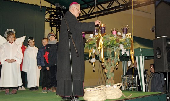 A Püspöki Palota adventi udvarán Spányi Antal megyéspüspök gyújtotta meg az első gyertyát. A megyéspüspök azt kívánta beszédében, hogy advent elején sikerüljön olyan elhatározást tennünk, amelyet meg is tudunk valósítani. A móri Szent Erzsébet Római Katolikus Általános Iskola tanulóinak ünnepi műsora után a látogatók birtokba vehették az Adventi Udvart, ahol kézművesek, iparművészek és kistermelők portékái között válogathattak, jótékony célra adakozhattak és megtekintehtték az új Betlehemet is.