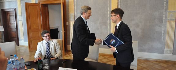 Több hónapos előkészítő munka után hivatalosan is megkötötték Székesfehérvár Önkormányzata és a Pannon Egyetem közötti együttműködést. Az erről szóló megállapodást dr. Cser-Palkovics András polgármester és Dr. Friedler Ferenc rektor csütörtökön írta alá ünnepélyes keretek között. Közös sajtótájékoztatójukon arról is beszámoltak, hogyan segítik egymást az egyetemi képzés fehérvári meghonosításában, valamint a műszaki felsőoktatás és a helyi gazdaság versenyképességének további fejlesztésében.