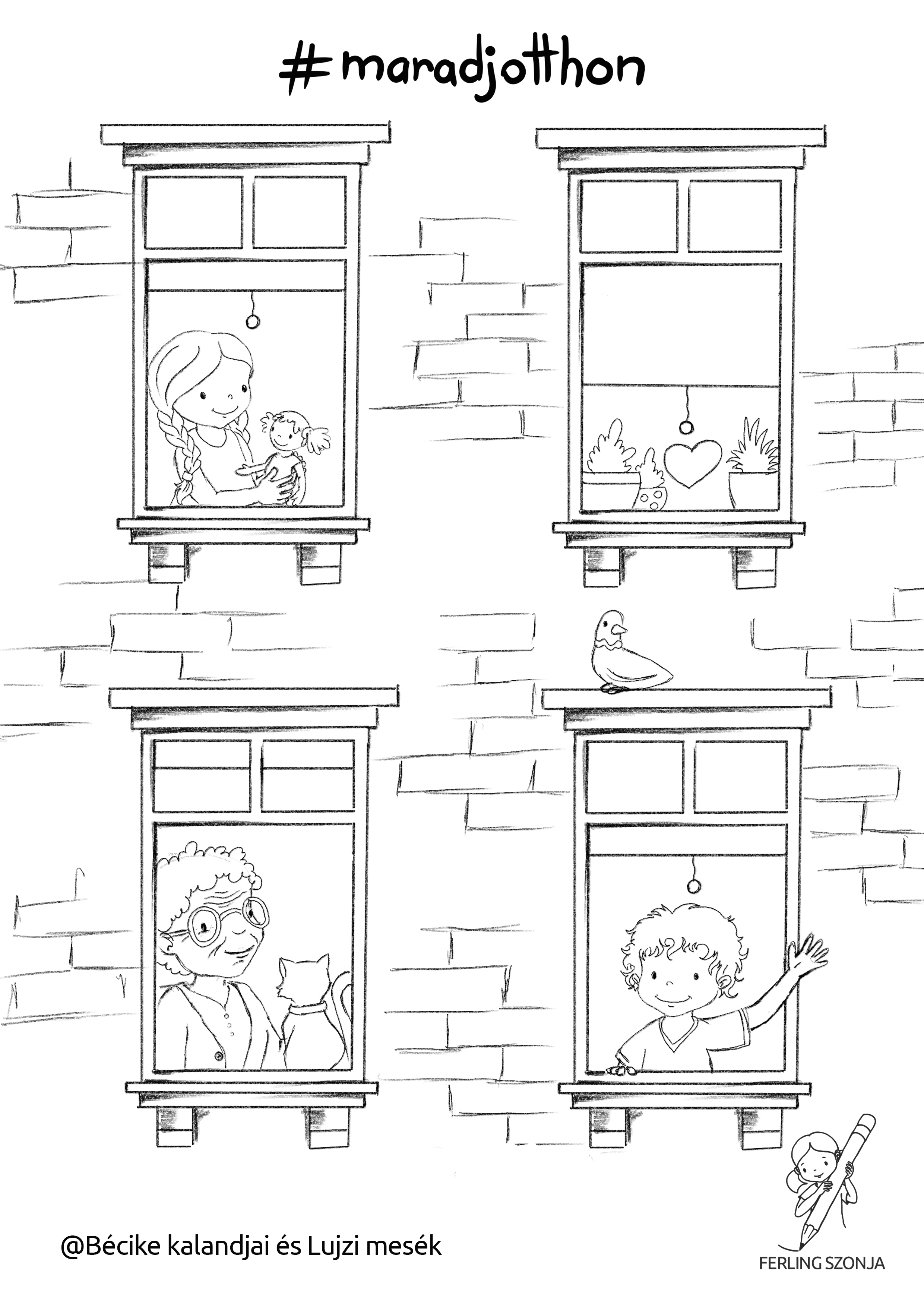 A #Maradjotthon! Lujzi&Béci! kezdeményezés célja, hogy a könyv főszereplőin keresztül megértessék a gyerekekkel a védekezés és az otthonmaradás fontosságát. A gyerekeknek egy kifesthető, kiszínezhető rajzot készítettek, hogy vidám, kreatív elfoglaltságot nyújtsanak számukra az otthon töltött napokra, amíg ismét létrejöhet a találkozás a barátokkal és a családtagokkal.