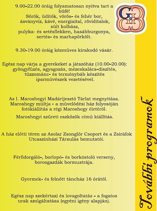 Maroshegyi Böndörödő szombaton - szüreti mulatságok a Gárdonyi Géza Művelődési Ház udvarán