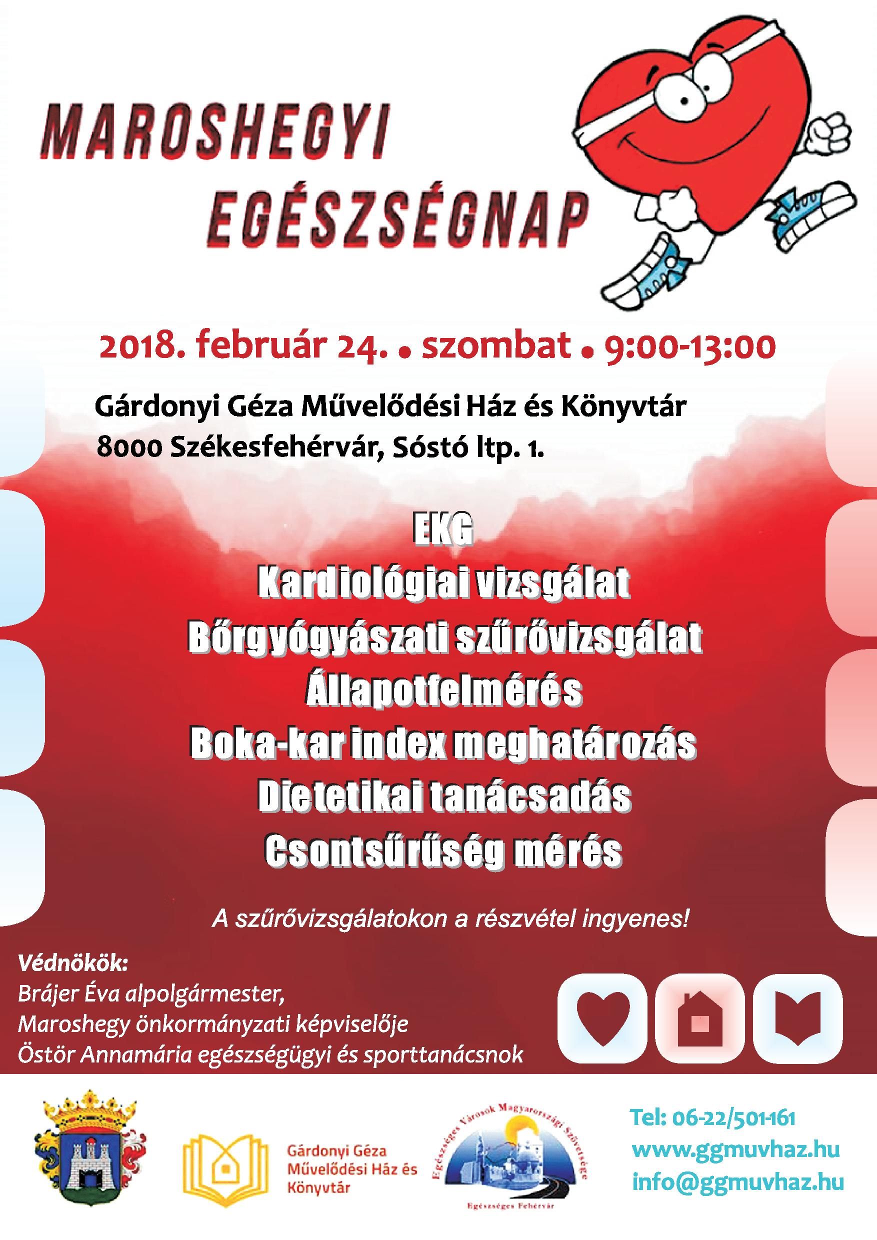 „Székesfehérvár ismét élen jár valamiben, hiszen évek óta a WHO alapelvek szerint hajtjuk végre a programjainkat. A Maroshegyi szűrőnap az idei első állomása annak a sorozatnak, amelynek keretében mindenkinek megpróbáljuk a lakóhelyéhez lehető legközelebb vinni a szolgáltatásokat. A szűrések a Gárdonyi Géza Művelődési Házban lesznek és a kórház, valamint a Humán Szolgáltató Intézet szakemberei végzik majd a vizsgálatokat.” - mondta el Östör Annamária, aki szólt arról is, hogy a Maroshegyi Egészségnap igen népszerű és sikeres volt tavaly, közel 170-en vettek részt.