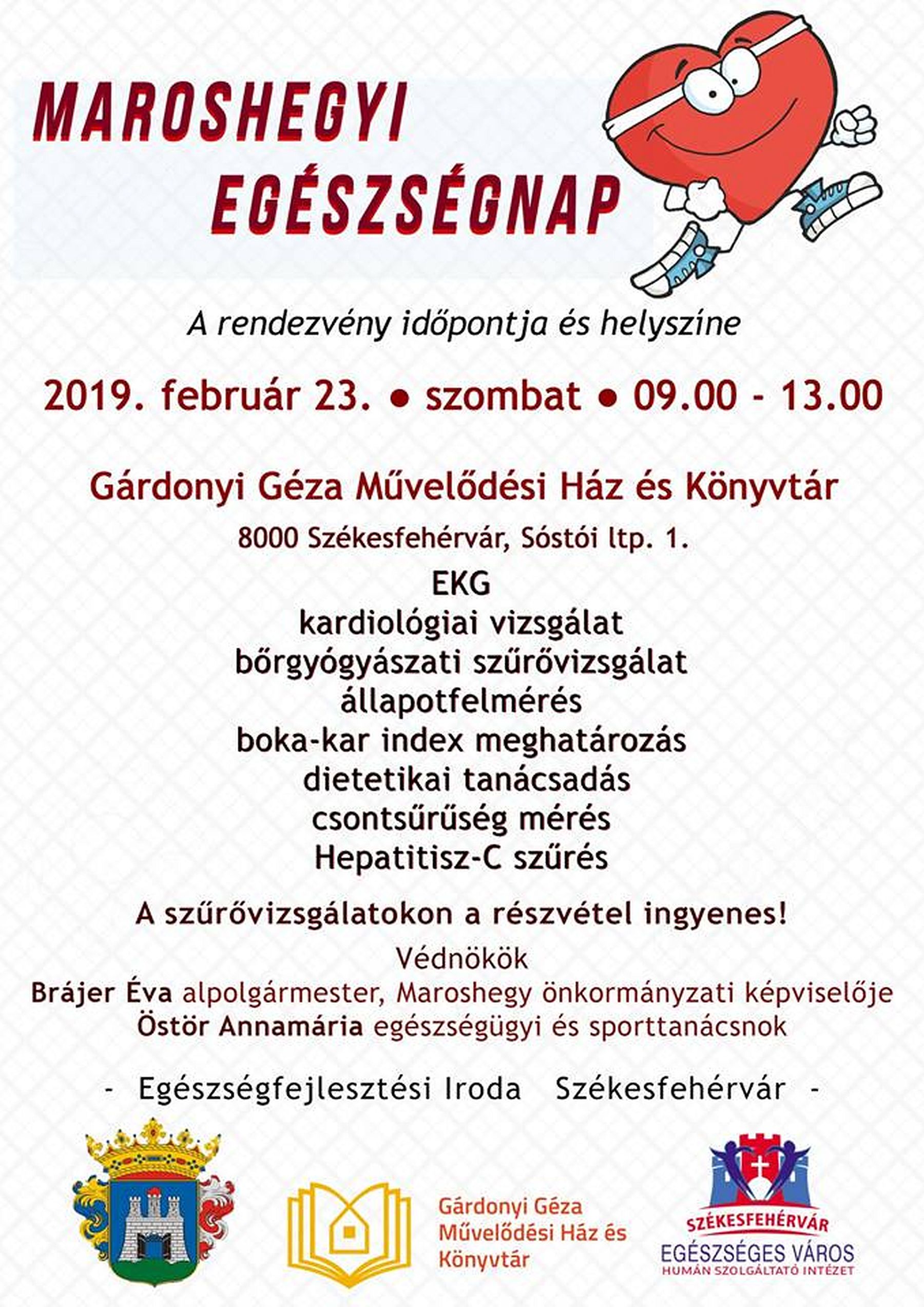 A Székesfehérvár Egészségfejlesztési Tervében foglaltaknak megfelelően 2019-ben a Maroshegyi Egészségnap lesz az első városrészi szűrőnap.