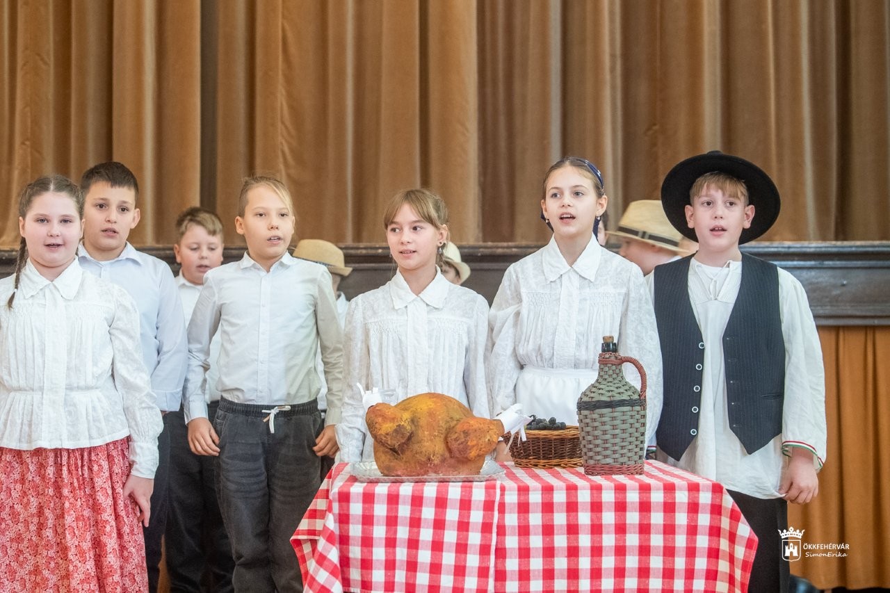 A műsorok sorát a Hermann László Zeneiskola diákjai nyitották kalotaszegi, román és moldvai dalokból összeállított csokorral, majd a Felsővárosi Általános Iskola 5. b osztálya az újborhoz kapcsolódóan egy tánccal, énekkel, népi rigmusokkal tarkított, vidám szüreti forgatagot jelenített meg. A Gyöngyvirág Óvoda Maci és Mókus csoportja dalokkal, kis jelenettel és a németek, illetve svábok lakta városrészekre, településekre jellemző kis lámpásokkal érkezett az ünnepségre.