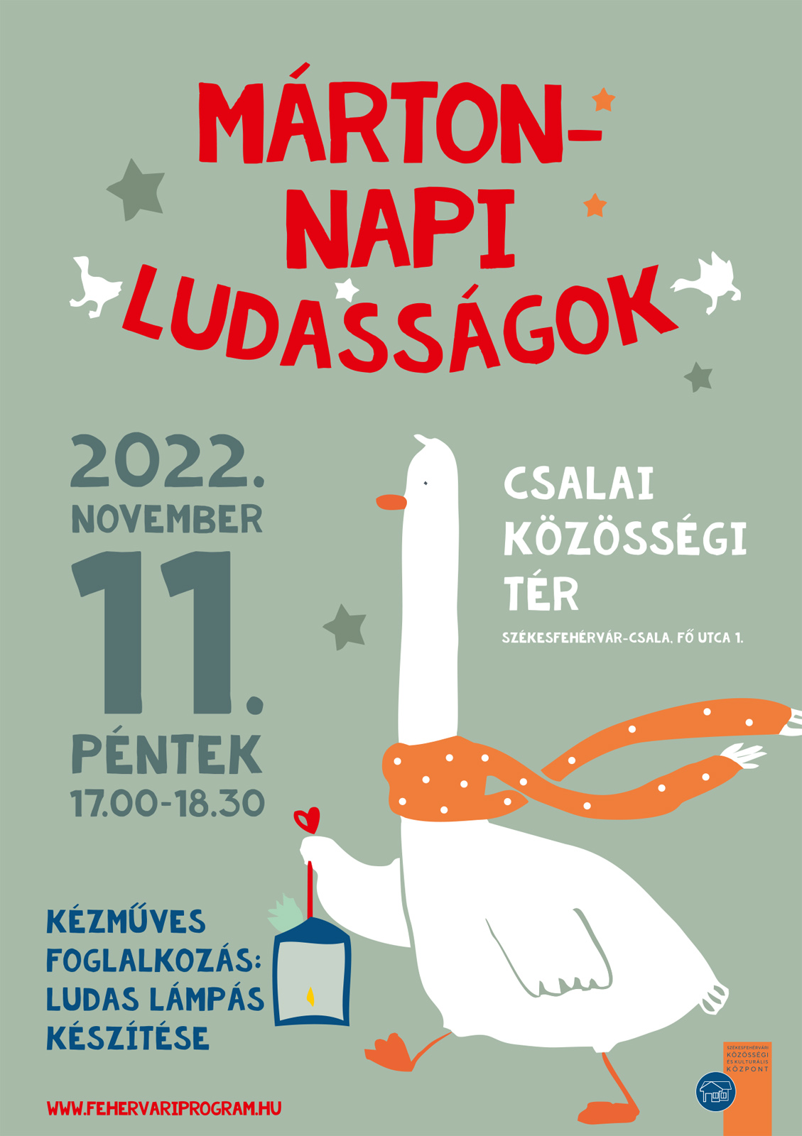 A Márton-napi hagyományokat eleveníti föl a Csalai Közösségi Tér, ahol ludas lámpásokat készíthetnek a résztvevők befőttesüvegből. A kézműves délutánra november 11-én, pénteken 17 órára várják az érdeklődőket.