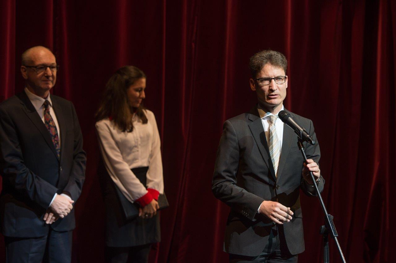 Az esten Székesfehérvár polgármestere is köszöntötte a díjazottat. Cser-Palkovics András polgármester köszönetet mondott a Vörösmarty Színház igazgatójának azért, hogy a tavalyi évben elindulhatott az a hagyomány, hogy a Pro Theatro díj átadására az első nagyszínpadi bemutató kezdetén kerül sor. „Ezzel is szeretnénk üzenni azt, hogy ennek a városnak és ennek a megyének a kulturális életében az egyik legfontosabb intézmény a Vörösmarty Színház.” – fogalmazott Székesfehérvár polgármestere, aki szólt arról is, hogy a város a színház nélkül nem tudná megvalósítani a közösségteremtő értékek és értékőrzés kapcsán tett célkitűzéseit.