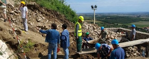Mindezen adatokra alapozva kezdődött meg a feltárás, amit a régészcsoport ott folytat, ahol tavaly abbahagyott. Kovács Gyöngyi a külső várfalnál kelet felé mutatja az irányt, ahonnan a felsővárból leomlott törmeléket elszállítják, mintegy hatméteres sziklás, kőtörmelékkel borított sávot akarnak egy hónap alatt megtisztítani.