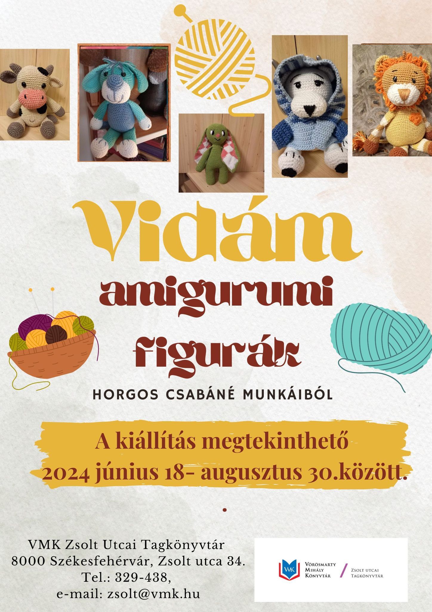 Szintén hosszabb ideig megcsodálhatják még a vidám amigurumi figurákat a látogatók a Zsolt utcai Tagkönyvtárban. A Horgos Csabáné munkáiból a hónap közepén nyílt kiállítás augusztus 30-ig látogatható az intézmény nyitvatartási idejében. A belépés valamennyi intézmény ingyenes, mindenkit szeretettel várnak!