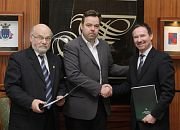 Együttműködési megállapodást írt alá a Fejér Megyei Szakképzés-szervezési Társulás, a Fejér Megyei Kereskedelmi és Iparkamara illetve a Fejér Megyei Agrárkamara elnöke. A megállapodás a megyében szakmát tanuló mintegy ötezer diák elhelyezkedési esélyeit javíthatja. A szakképzési folyamatok tervezése és végrehajtása nem képzelhető el a gazdasági igények megfogalmazása és képviselete nélkül - hangzott el a Megyeháza Címertermben.