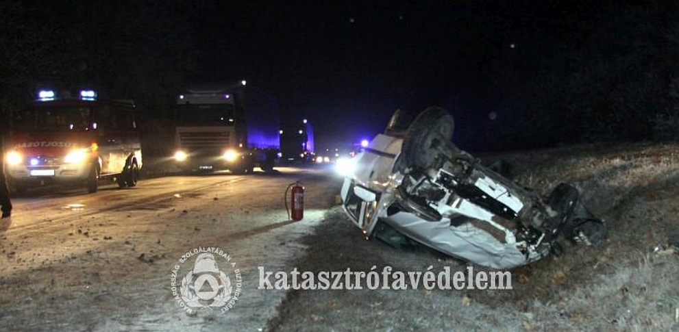 Az árokban felborulva állt meg egy személyautó a 811-es út Székesfehérvár és Csala közötti szakaszán január 2-án, a késő esti órákban. Az autónak két utasa volt, egyikük sem tartózkodott már a járműben a tűzoltók kiérkezésének időpontjában. Egy férfi könnyű, egy nő pedig súlyos sérüléseket szenvedett, a mentők kórházba szállították őket.