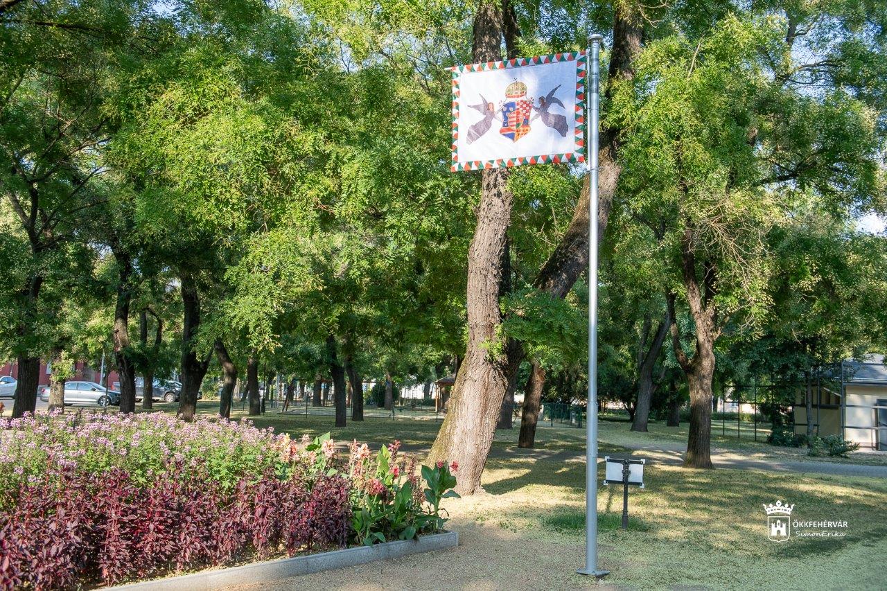 A zászlót a nemrég elhunyt, egykori megyei önkormányzati képviselő készíttette 2013-ban a hősi halottak tiszteletére. Németh István, a Krajczáros Alapítvány elnöke rövid beszédben emlékezett meg Simon Lászlóról, aki egykori hivatásos katonaként és mint Székesfehérvárt szívből szerető lokálpatrióta mindig úgy gondolta, hogy „ennek az emlékműnek itt többnek kell lennie, mint egy kevesek által ismert ligeti szobornak. Ezért is áldoztam időt, pénzt és energiát arra, hogy a talapzatot méltó díszítés, virágok ágyása fogja körbe.” Fontosnak tartotta, hogy az ezredzászló mása itt lobogjon a 17-eseknek emléket állító Bory-szobor mellett és őrködjön emlékük felett.