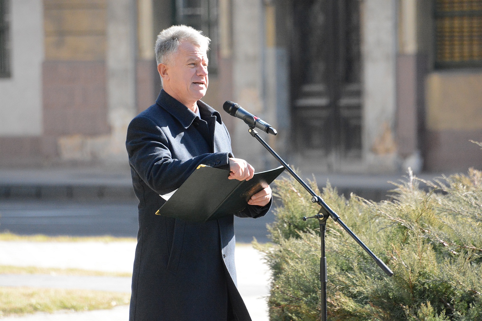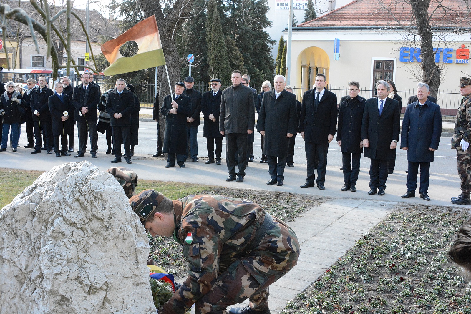 A megemlékezésen beszédet mondott Törő Gábor országgyűlési képviselő. Elhangzott többek között, hogy a kommunizmus az emberiség történetében fellelhető egyik legaljasabb szellemi kaland, kísérlet, amely megszámlálhatatlanul sok bűnt követett el a szellem, az egyetemes kultúra és a nemzeti kultúrák ellen. Törő Gábor úgy fogalmazott: „Hetven éve, 1947. február 25-én tartóztatták le Kovács Béla kisgazda képviselőt. Bebörtönözték, vallatták, majd a Szovjetunióba deportálták. A magyaroknak Kovács Béla a szabadság és a nemzet függetlenségének jelképe volt. Letartóztatásakor mindenki úgy érezte, a demokrácia bástyája dőlt meg. Egy ember sorsáról volt szó, de ebből az egész nemzet megtudhatta: a szabadság elveszett.” A zsarnokság beszivárgott az otthonokba, beitta magát az emberek életébe és kivétel nélkül mindenkitől elvett valamit a bizonytalansággal, egymás méricskélésével, a mindig lesben állással, az irigykedéssel és a képmutatással. Az erős méreg azóta is nehezen tisztul ki a lelkekből, azonban a sötétség ellen nem fegyverrel, hanem fénnyel lehet harcolni. A hajnalhasadáshoz, a történelem igazságának tisztán látásához idő kell!