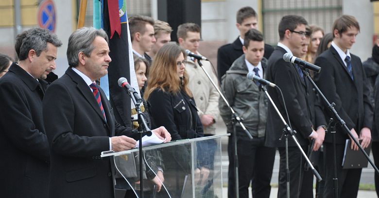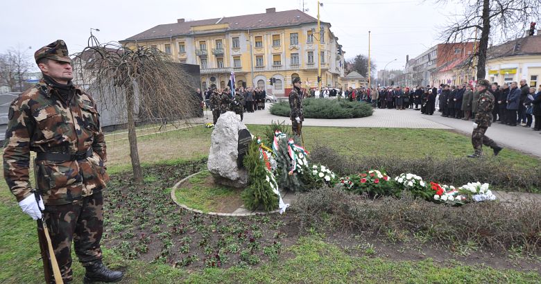 A város országgyűlési képviselője Vargha Tamás kiemelte, hogy a rettenetes 20. század nagy háborúja után negyven éven keresztül Magyarország is megtapasztalhatta a kommunizmust. „A világháborúban nem csak katonáink estek fogságba, hanem a szovjet csapatok bevonulásakor nőket, gyerekeket, fiatalokat küldtek malenkij robotra vagy a gulágra. Koholt vádakkal hoztak halálos és súlyos ítéleteket. A közigazgatásból, igazságszolgáltatásból menesztették a jól képzett szakembereket, az ipart a munkásigazgatók jellemezték, a mezőgazdaságot a padlássöprés és tsz-esítés jellemezte és örülhetett, akit csak tulajdonától és nem szabadságától fosztottak meg, hiszen megteltek a börtönök és ítélet nélkül is lehetett büntetetté válni – bizonyítja ezt Recsk. 1956 gyönyörű 12 napját követően pedig évekig tombolt a megtorlás. Ügynökök, besúgók, tartótisztek és a félelem jellemezte ezt az időszakot. Le kell számolni a hazug eszmékkel és újjá kell építeni önmagunkat, családunkat, nemzedékünket tudással, tanulással, szeretettel és összefogással.” – zárta beszédét Vargha Tamás.