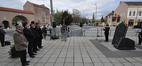 Megemlékezés az egykori zsinagógánál a Holokauszt emléknapon