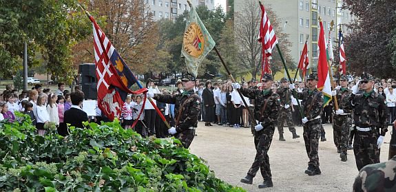 A hagyományokat folytatva Székesfehérvár és Fejér Megye Önkormányzata, valamint a Magyar Honvédség Összhaderőnemi Parancsnoksága közös koszorúzást szervezett a Nemzeti Gyásznapon. A megemlékezések 9 órakor a Corpus Hungarikum szobornál kezdődtek, a Fricsay-díjas Székesfehérvári Helyőrségi Zenekar közreműködésével. A II. Rákóczi Ferenc Magyar-Angol Két Tanítási Nyelvű Általános Iskola diákjai elevenítették fel az 1848/49-es forradalom és szabadságharc, valamint az azt követő megtorlás időszakát. A megemlékező műsor után Vargha Tamás megyei elnök, Brájer Éva alpolgármester, valamint az Varga Csaba dandártábornok, az Összhaderőnemi Parancsnokság törzsfőnöke helyezett el koszorút a szobornál. Õket a történelmi egyházak és több társadalmi szervezet képviselői követték.