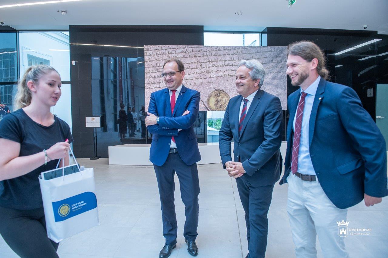 A sajtótájékoztatót követően a kiállítás kurátora, Makoldi Miklós vezetésével Hoppál Péter Vargha Tamással, dr. Cser-Palkovics András polgármesterrel, dr. Vizi László Tamás, a Magyarságkutató Intézet tudományos főigazgató-helyettesével és Pokrovenszki Krisztiánnal, a Szent István Király Múzeum igazgatójával közösen tekintette meg a kiállítást.