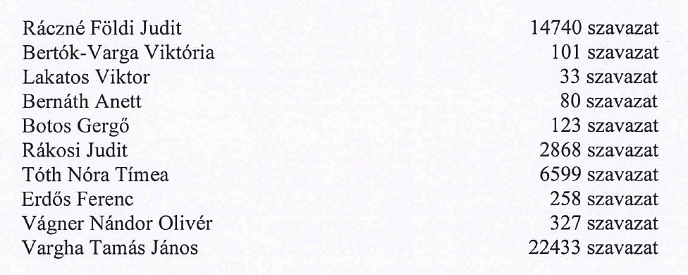 A választási bizottság nem sokkall éjfél előtt hozott határozatai szerint a teljes feldolgozottságnál Vargha Tamást és Törő Gábort választották országgyűlési képviselőnek.
