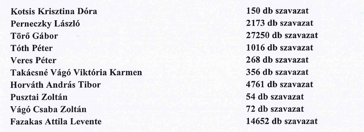 Végeredmény teljes feldolgozottságnál - Vargha Tamás és Törő Gábor győzött