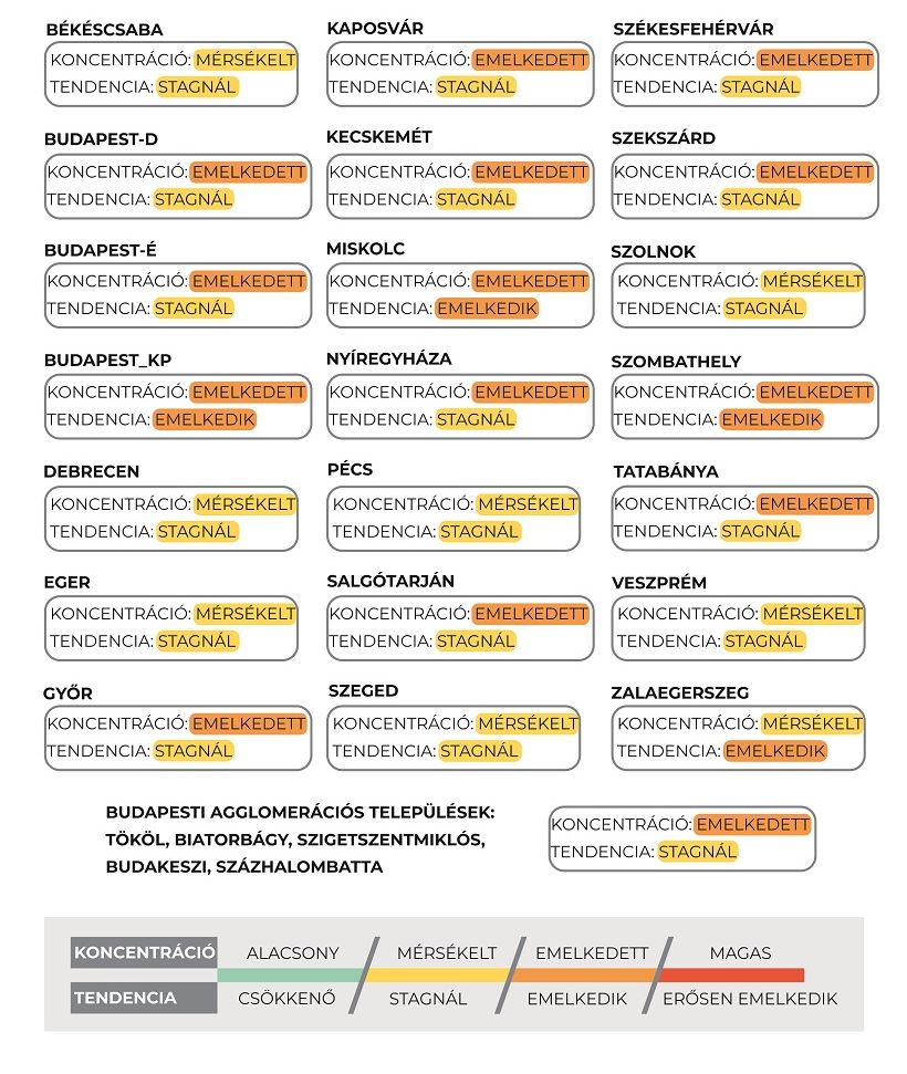 A vizsgált szennyvízminták esetében emelkedés mérhető Budapest központi szennyvíztisztító mintájában, Miskolcon, Szombathelyen, Zalaegerszegen. Sok városban – így Székesfehérváron is – továbbra is emelkedett szintet mértek a szakemberek a koncentráció stagnálása mellett, míg csökkenés ezen a héten sem volt sehol tapasztalható egyik településen sem.