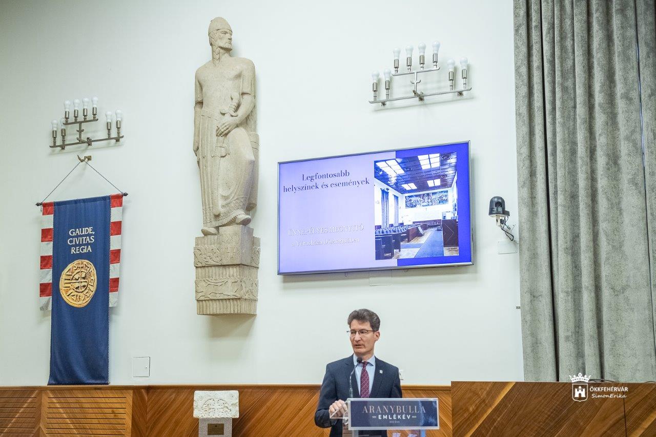 „Az Aranybulla 800 évvel ezelőtt egy kifejezetten korszerű gondolatot fogalmazott meg azzal, hogy kötelezettséget rótt az uralkodóra, és ezt a kötelezettséget az uralkodónak – vagy távollétében a nádornak – évről évre Székesfehérváron kellett teljesítenie. Európai és világszinten is felbecsülhetetlen az az érték, melyről a következő évben megemlékezünk. Az emlékezet kötelességünk és felelősségünk!” – fogalmazott a polgármester. Arról is beszélt, hogy számos intézményrekonstrukciós beruházás 2022-ben fejeződik be vagy kezdődik el. Szimbolikusan jövőre indul a Városháza külső és belső felújítása, ami méltó és maradandó emlék lesz. Mint mondta várhatóan januárban véget ér a Szent István Király Múzeum Rendház épületének felújítása és bővítése, illetve zajlik a Köztársaság Mozi helyén a Kőtár és Látogatóközpont kialakítása.