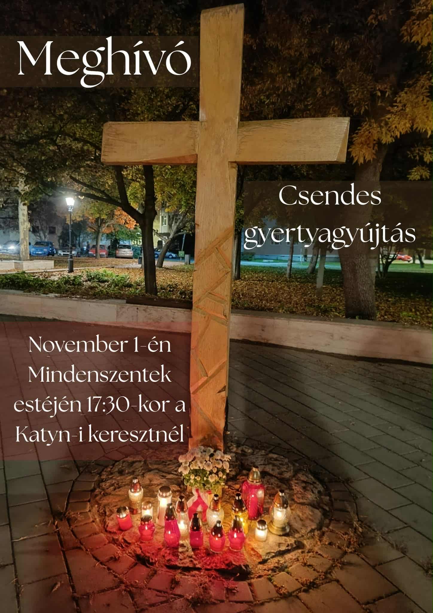 Csendes gyertyagyújtás november 1-én Mindenszentek estéjén 17.30-kor a Katyn-i keresztnél.