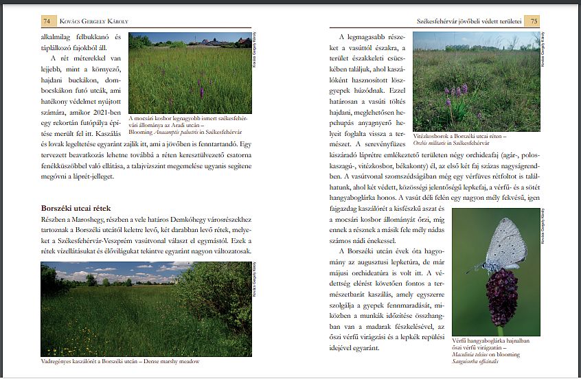 A természetvédelmi tanulmányok között találjuk a soponyai Sóstó kezelési tervét, illetve Székesfehérvár jövőbeli védett területeinek ismertetését. Ez utóbbi írásban szó esik a Gödör utcai szikes rét sótűrő növényeiről, valamint a Maroshegy értékes élőhelyfoltjairól. Színes fényképeken csodálhatjuk meg az Aradi utcán virágzó mocsári- és a Borszéki utcán nyíló vitézkosbort, a Szalontai utcai rét gyönyörű virágmezőjét, a Zágoni utcai tölgyest és az Ősmocsár nádasát. A rövid közlemények között is van fehérvári témájú: a csónakázótó partján figyeltek meg több alkalommal egy rendkívül különös színezetű gémet, amelyik feltehetően két fajnak, a bakcsónak és az üstökös gémnek a hibridje lehet.