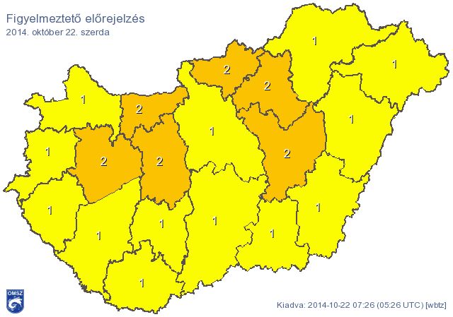 Jelenleg másodfokú riasztási szint van érvényben, amely szerint a legerősebb széllökések elérhetik a 70 kilométer/órás sebességet.