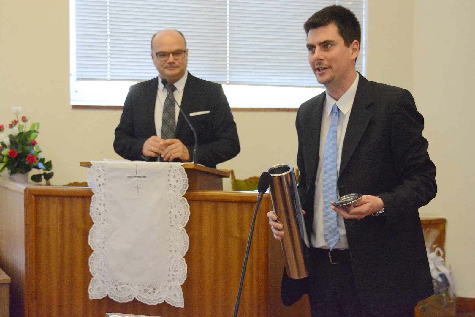 Az istentiszteleten köszöntötte a gyülekezetet Székesfehérvár polgármestere is, aki kiemelte, hogy a több, mint ezer éves Fehérvár a templomok, gyülekezetek városa is és nem is maradhatott volna fenn több mint ezer évig, ha ezek a közösségi terek nem lettek volna meg az adott korban azoknak az embereknek, akik szerették volna megvallani hitüket. Cser-Palkovics András polgármester hangsúlyozta, hogy Fehérvár jövője elképzelhetetlen a közösségek bővülése nélkül, így amikor a baptista gyülekezet az önkormányzat segítő szándékát kérte, akkor természetes volt, hogy a város megadja ezt. "A kor kihívásainak csak akkor tudunk megfelelni, ha hitéletben Európát meg tudjuk erősíteni, ehhez pedig bővülő helyek kellenek, hogy senki ne forduljon ki egy ajtón azért, mert neki már nem jutott hely. Amennyiben a gyülekezet igényt tart rá, a város hozzá fog járulni anyagi eszközökkel is a tervek megvalósulásához annak érdekében, hogy közösségként tudjunk erősebb városssá válni. Mert ha közösségként erősebbek vagyunk, akkor a napi problémákon és nehézségeken is könnyebben leszünk úrrá." - tette hozzá Székesfehérvár polgármestere.