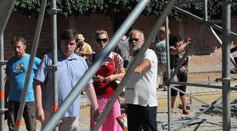 Az épülő színpadot szerdán délelőtt Róth Péter alpolgármester a Vörösmarty Színház műszaki vezetőjével, Gerstner Tiborral közösen nézte meg. Mint elhangzott mindent csak a Múzeum engedélyével Biczó Piroska és Nádorfi Gabriella felügyelete mellett végeznek a színpadépítő szakemberek.