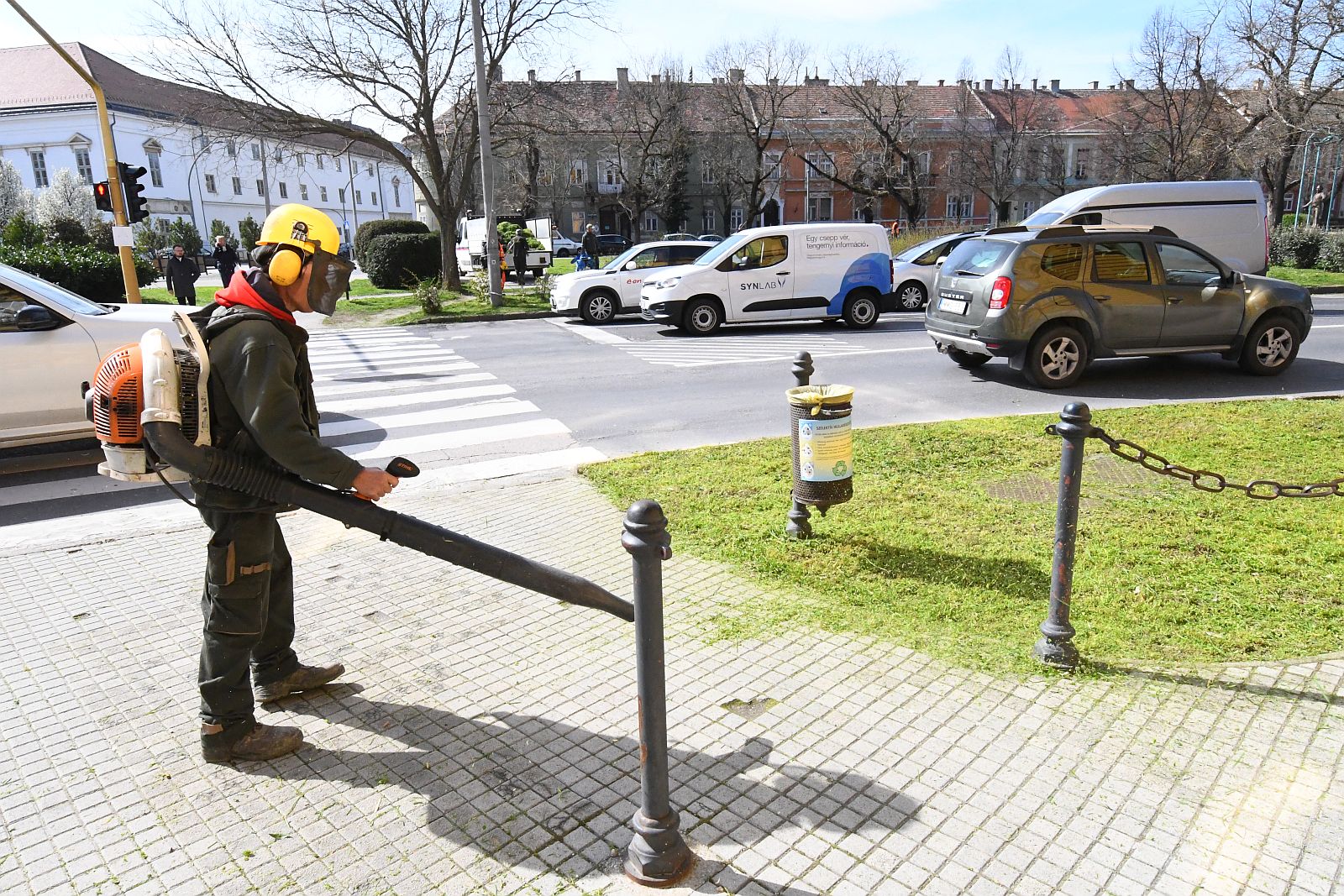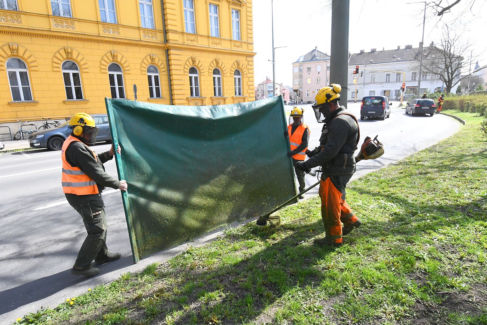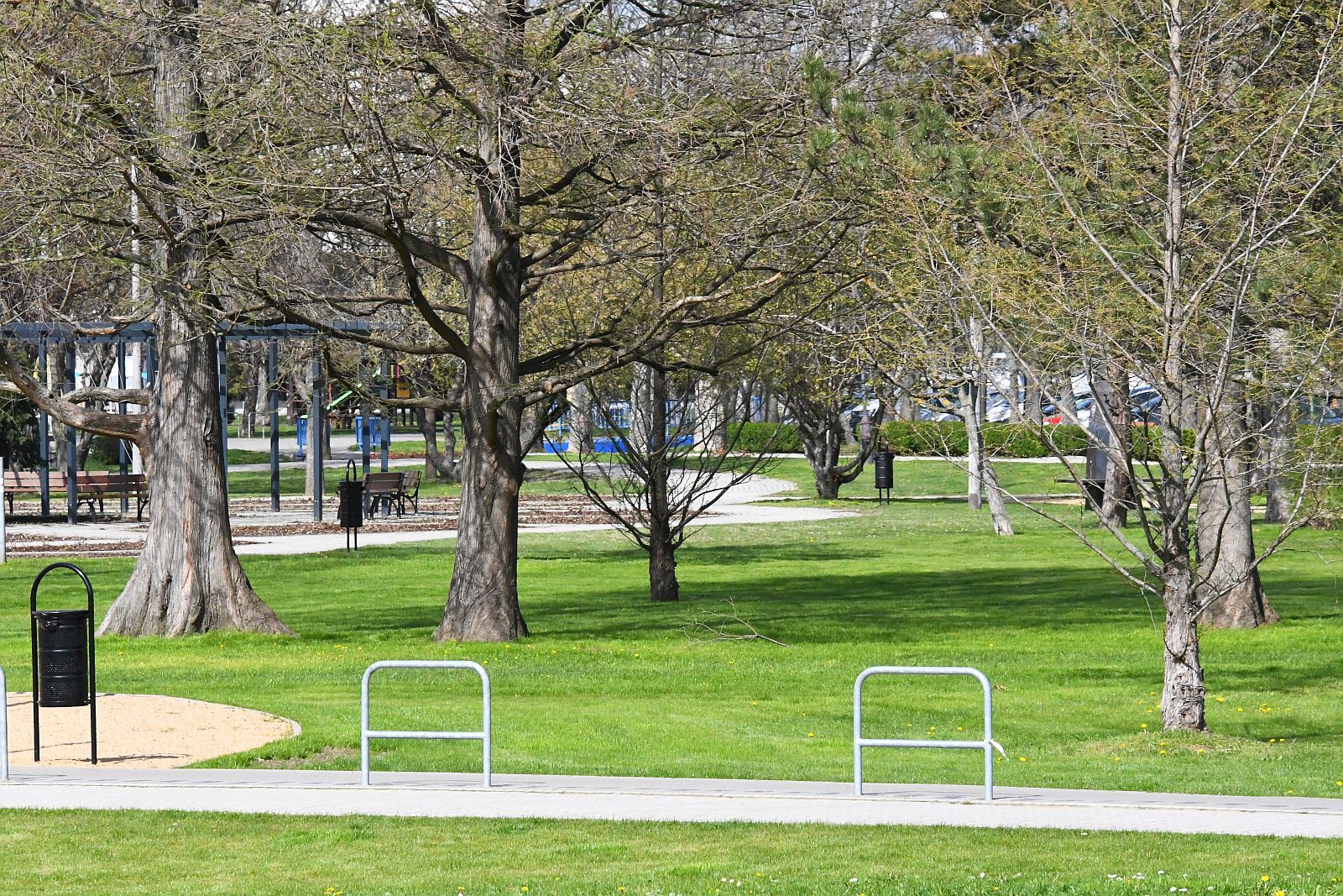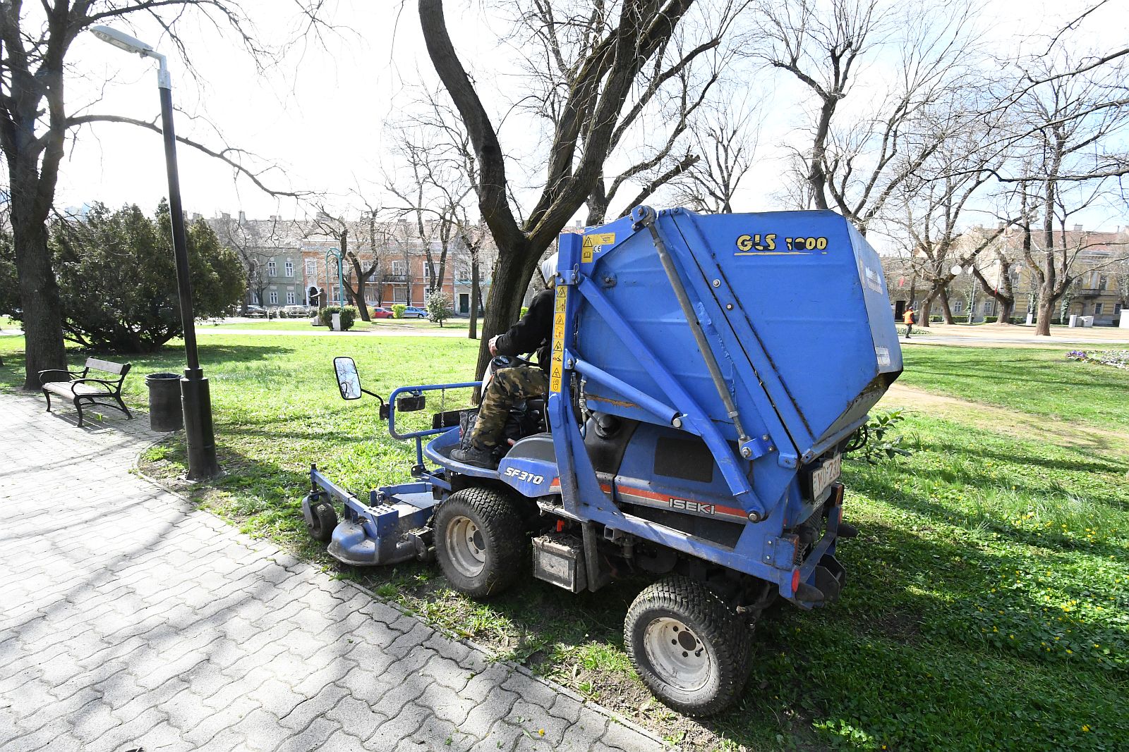 A felújított Rózsa ligetben és a Zichy ligetben és környékén hétfőn nyírták le a füvet a parkfenntartók.