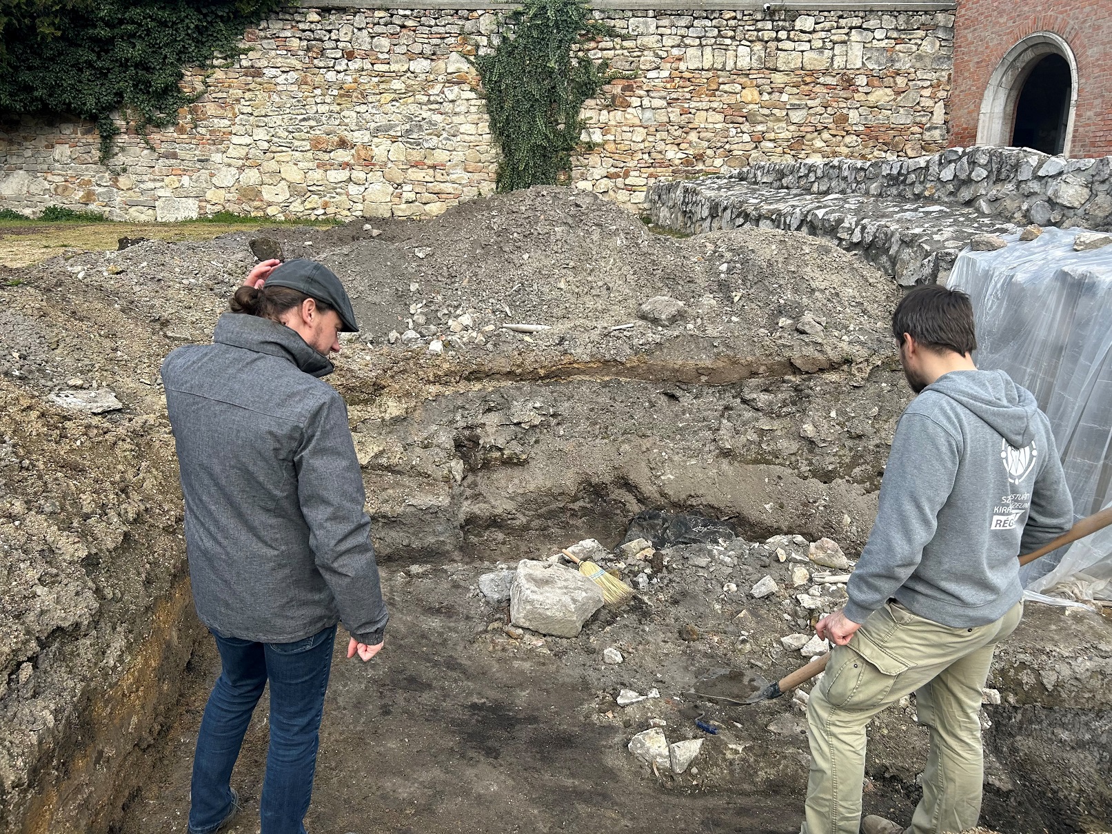 Mint ismert, korábban talajradarozást végeztek a területen annak érdekében, hogy kijelöljék az ásatás helyszínét, ahol a feltételezések szerint a középkori városfal alapozását, fagerendákat rejt a föld. A megnyitott szelvény egy olyan területen helyezkedik el, ahol korábban még nem volt feltárás. Erről is kérdeztük Pokrovenszki Kirsztiánt, a Szent István Király Múzeum főigazgatóját, aki az ásatás vezetője. "Minél kevésbé bolygatott egy terület, annál több adatot tudunk kinyerni belőle. A szelvényünk északi felében azért megfigyelhető egy olyan kevert réteg, ami valószínűleg Kralovánszky Alán egyik szelvénye lehetett. Ez a korábbi ásatási rajzokon is látszik. A műemléki felfalazás során is több olyan réteget tudtunk megfigyelni, melyek jelentősen bolygatták ezt a környezetet. Ami fontos, hogy a műemléki felfalazás alatt találtunk korábbi falmaradványokat. Két periódust is el tudtunk különíteni. Nyilván a felfalazás előtt egy betonréteggel alapozták a műemléki részt. Volt, ahol ki is van szedve egy-egy részen ez a fal, de nagyon szerencsés módon olyan helyen tudtunk ásni, ahol falszakaszok megmaradtak. Ezért tudtuk dokumentálni megfelelő mértékben.” – mondta el Pokrovenszki Krisztián.