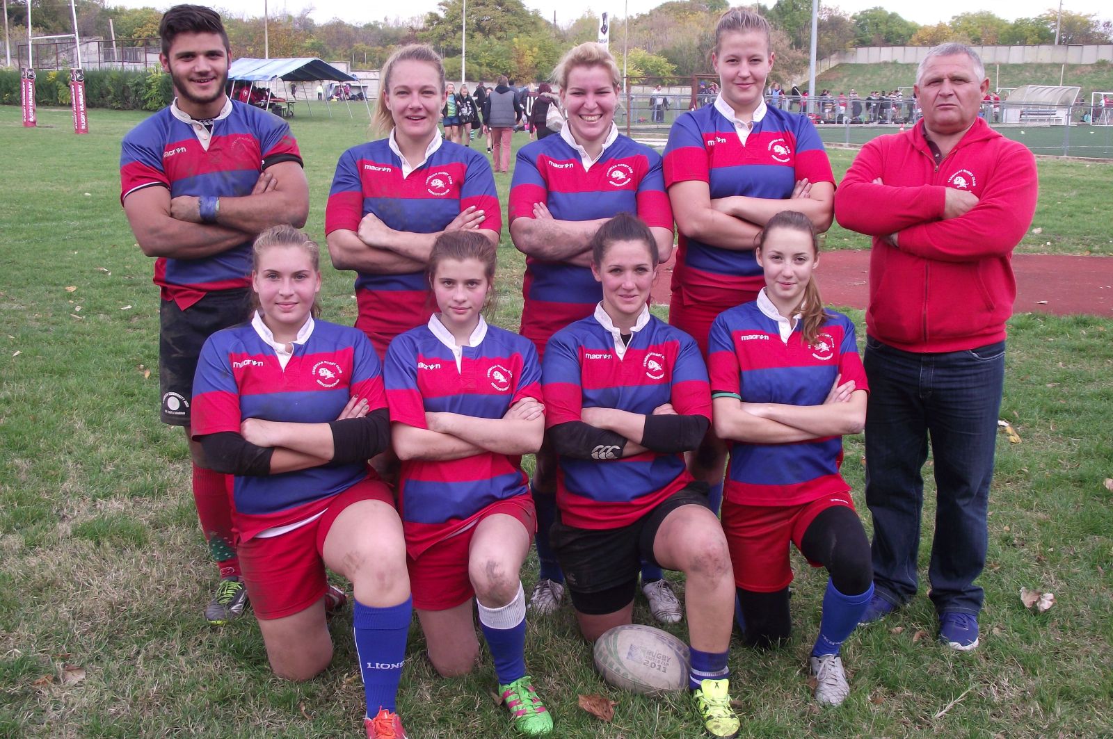 Állnak: Antal Benjámin edző, Gyolcsos Mária, Geringer Nikolett, Szabados Katalin, Gyolcsos Ferenc vezető edző. Térdelnek: Zólyomi Edit, Szentesi Szimonetta, Huszti Katalin, Kiss Viktória.Első mérkőzését a Fehérvár Rugby Club lánycsapata a váci Királyság csapata ellen vívta. Az első 5 pontos célt a Vác szerezte, majd Gyolcsos Mária egyenlített. A Második 5 pontos célt is Gyolcsos Mária szerezte, így 10 - 5 állt az eredményjelzőn az első félidő után. A sáros mély talajon a második félidő rendkívül izgalmasan alakult, de nem született pont. Második mérkőzésen az FRC 44-0-ra lépte le a Barbarians-t. A döntőben az FRC a Tárnokot győzte le 26-12 aráynban. Az első félidő 2. percében egy szép center passzsorozatot követően Gyolcsos Mária szerzett vezetést (5 – 0). Azt követően a Tárnok csapata szerzett 5 pontos célt, sőt a jutalomrúgásával a vezetést is átvette (5 – 7). Ezt követően Huszti Katalin szerzett újabb 5 pontos célt, majd Zólyomi Edit jutalomrúgását követően 12 - 7-re módosult az eredmény. A Tárnok nem adta fel 5 pontos céljával és 2 pontos jutalomrúgásával egyenlített, így 12 – 12 lett az félidő végeredménye. A második félidőben elfáradt a Tárnok és nem bírta a sáros talajt. A fehérvári lányok ekkor kezdtek igazi látványos játékba, Gyolcsos Mária céját megelőzően 11 passzos látványos támadásának köszönhetően szerzett 5 pontot az FRC, amit Zólyomi Edit toldott meg két ponttal. A második félidő fehérvári pontját a végig rendkívüli harciassággal küzdő Huszti Katalin szerezte, majd a jutalomrúgást Zólyomi Edit ezúttal sem hibázta el.