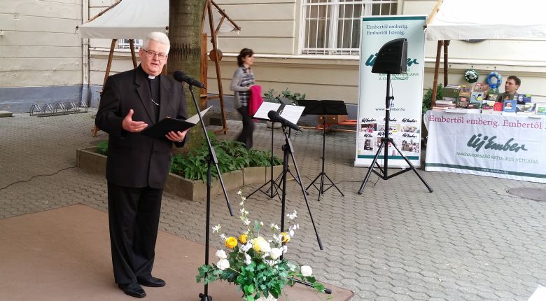 Csütörtökön a Szent Imre Általános Iskola műsora után Spányi Antal püspök nyitotta meg a 9. Katolikus Könyvnapokat a Szent István Művelődési Ház udvarán. "A könyv tanít, nemcsak informál, azt megteszi az informatika. A könyv ennél többet ad, belőle az ember az életre tanul.. A könyv nevel. Most látjuk többfelé a városban, a plakát hirdeti: Van célom. Kaszap Istvánt is a jó olvasmányok segítették, hogy megtalálja célját, és a jó könyvek segítettek nemzedékeknek, és segítenek nekünk is hogy tartalmas, értékes, igazi életet tudjunk élni. A nem olvasott ember soha nem lesz igazán intelligens, kultúrált. A könyv összeköt, barátokat szerez, személyes kapcsolatokat teremt." - hangsúlyozta megnyitó beszédében Spányi Antal.