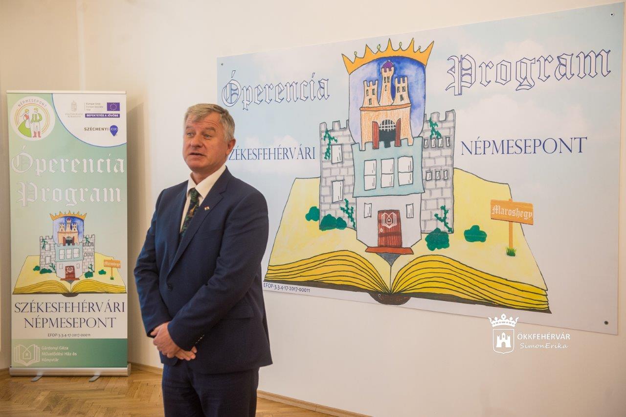Külön köszönetet mondott Fehérvár polgármesterének, országgyűlési képviselőjének és Maroshegy képviselőjének, akik - mint mondta - „a kezdetektől fogva támogatták azt az elképzelésünket, hogy Székesfehérváron, a Gárdonyi Géza Művelődési Házban nyithassuk meg ezt a NépmesePontot.”