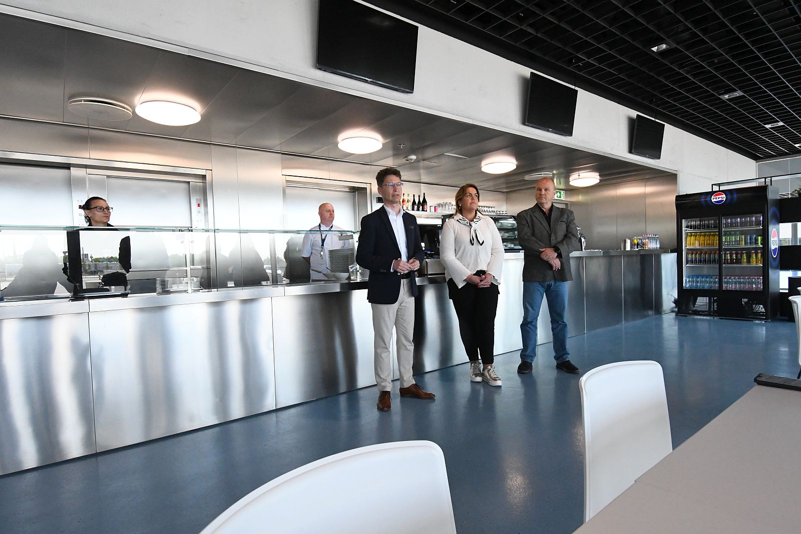 Dr. Cser-Palkovics András, Székesfehérvár polgármestere hangsúlyozta, hogy a Közgyűlés döntése értelmében a Városfejlesztési Kft. üzemelteti az Arénát, ezen belül pedig Székesfehérvár Városgondnoksága Kft. felel a catering szolgáltatásokért, így az étterem működtetéséért is. Fontos, hogy mindkét cég teljesen önkormányzati tulajdonú, kiszervezés nincs, és ez fontos üzenet a lakosság irányába. A város lépésről lépésre „belakja” az Arénát, ez a folyamat most egy újabb, fontos állomásához érkezett. A környező úthálózat létrejöttével realizálódott az a lehetőség, hogy az étterem kiváló kiszolgálóegysége lehet a környező ipari létesítményeknek. A munkavállalók a munkahelyükhöz viszonylag közel, szép helyen, jó minőségű ételeket tudnak fogyasztani.