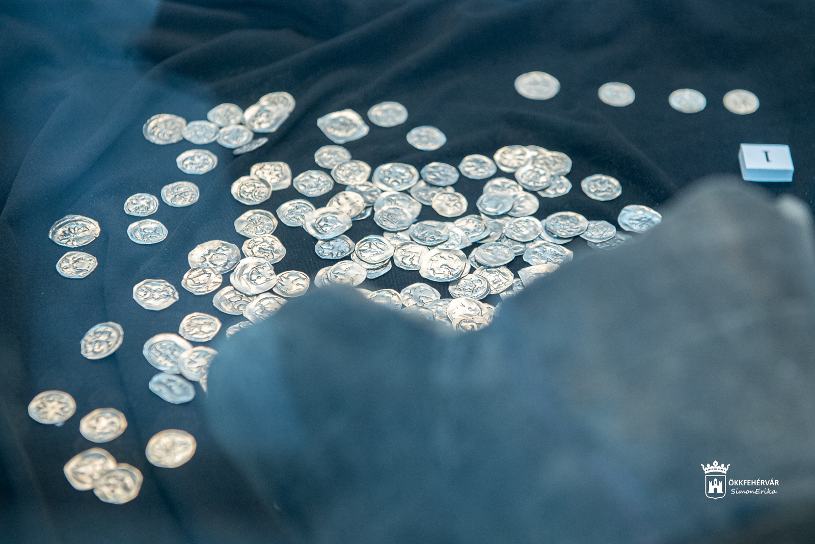 Berek Veronika, a terepi kutatásokat végző régész arról mesélt, hogy tavaly két alkalommal, januárban és novemberben végeztek terepi kutatásokat a helyszínen, ahol végül Gaál Tamás, a fehérvári Közösségi Régészeti Program résztvevője bukkant rá a kincsekre. Először az agyagedény és a gyökerek által kinyomott érmék kerültek elő, majd előkerült a többi érme is. A kincseket a restaurátorműhelybe szállították, ahol az érmék között talált szervesanyag-maradványok alapján kiderült, hogy a 779 darab érmét egy vászonszütyőbe rejtették, majd lefedték a törött agyagedénnyel. Az érmék legtöbbje II. Ottokár idejéből származik, ám vannak köztük V. Istvánhoz, IV. Bélához és IV. Lászlóhoz kapcsolódó darabok is.