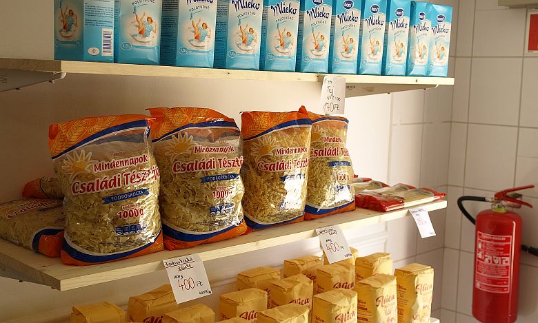 A május elején megnyílt boltba betérők alap-pékárukat, így kenyeret, kiflit, zsemlét, töltött és töltetlen termékeket, alapélelmiszereket (tészta, tej, cukor, liszt), valamint frissítő üdítőket is vásárolhatnak. Az élelmiszerek az Alba Kenyér Sütőipari Zrt. és a Szent István Mezőgazdasági és Élelmiszeripari Szakképző Iskola jóvoltából jutnak el a Fini Pékségbe.