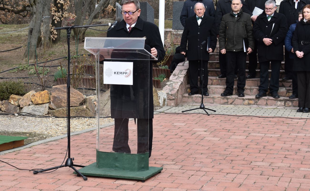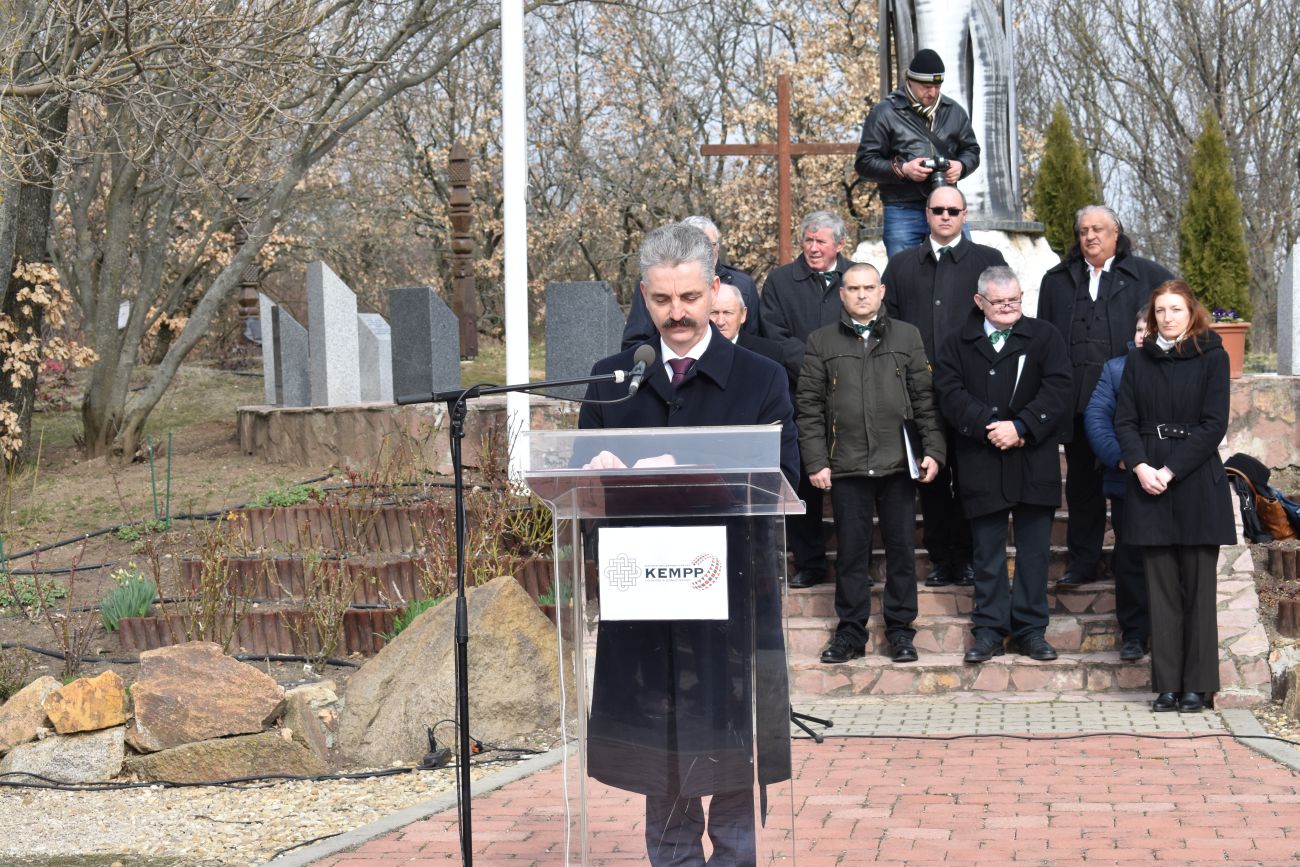 Az ünnepség kezdetével addig vártak, amíg beérkeztek a X. Kegyeleti emlékfutás résztvevői, akik virágokat helyeztek el a szkéné, azaz a Nemzeti Emlékhely oszlopa előtt. Elsőként Görög István, a KEMPP ügyvezetője mondta el köszöntő gondolatait. Említést tett a Katonai Emlékpark múlt idejéről, a kezdetektől egészen napjainkig. Köszönetet mondott mindazoknak, akik segítségükkel megalapozták a fejlődést, és hozzájárultak a fejlesztés lehetőségéhez.