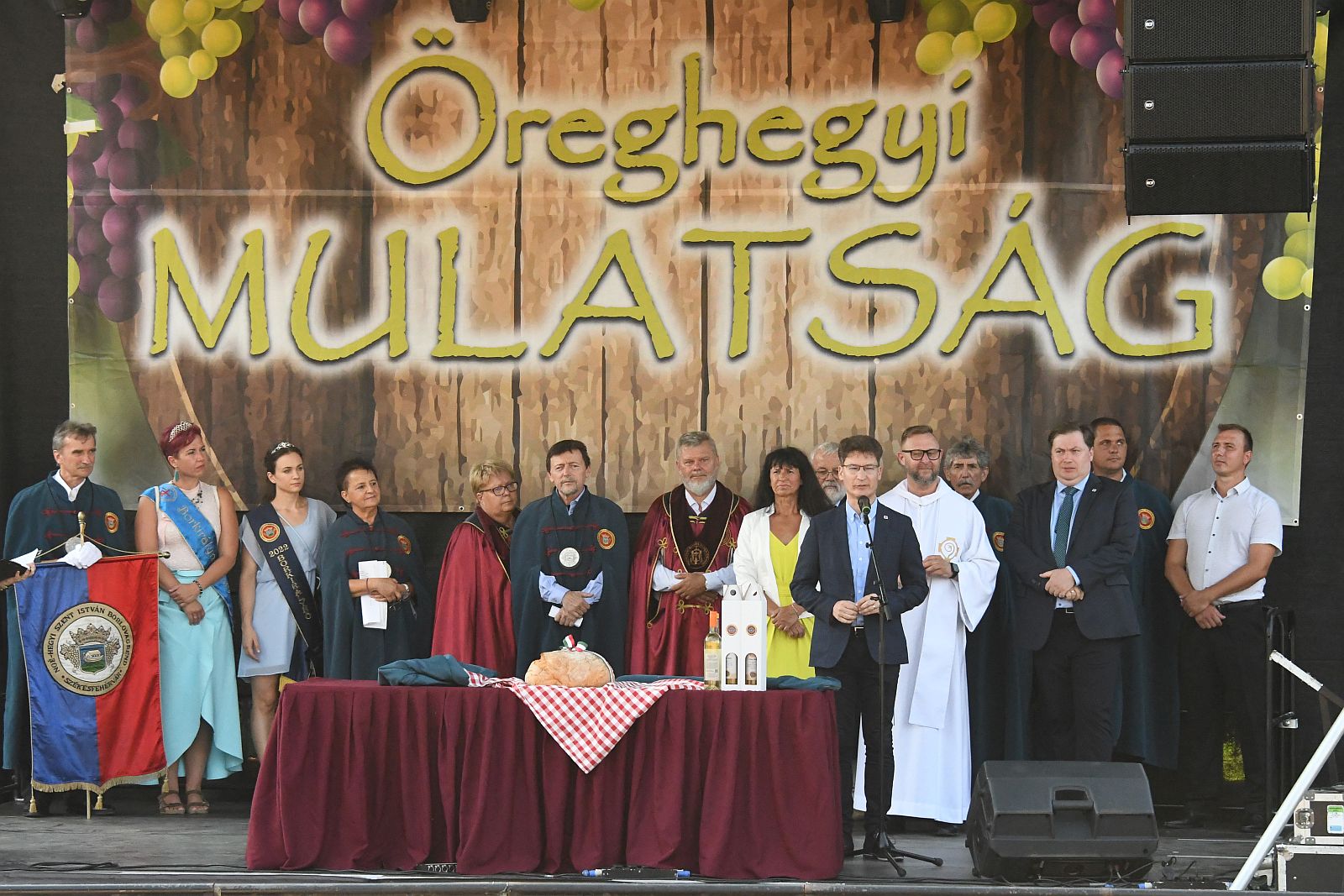 A Noé-hegyi legendát Molnár Margit, a Noé-hegyi Szent István Borlovagrend kincstárnoka ismertette, majd dr. Cser-Palkovics András polgármester köszöntötte a megjelenteket. Elmondta, hogy a Székesfehérvári Királyi Napok nem csak egy összművészeti, hanem egy össz-városi rendezvénysorozat is, ám nem minden programja kapcsolódik szorosan a Belvároshoz. Az Öreghegyi Mulatság több évtizedes hagyomány, és nagy öröm, hogy mindig sokan eljönnek rá.