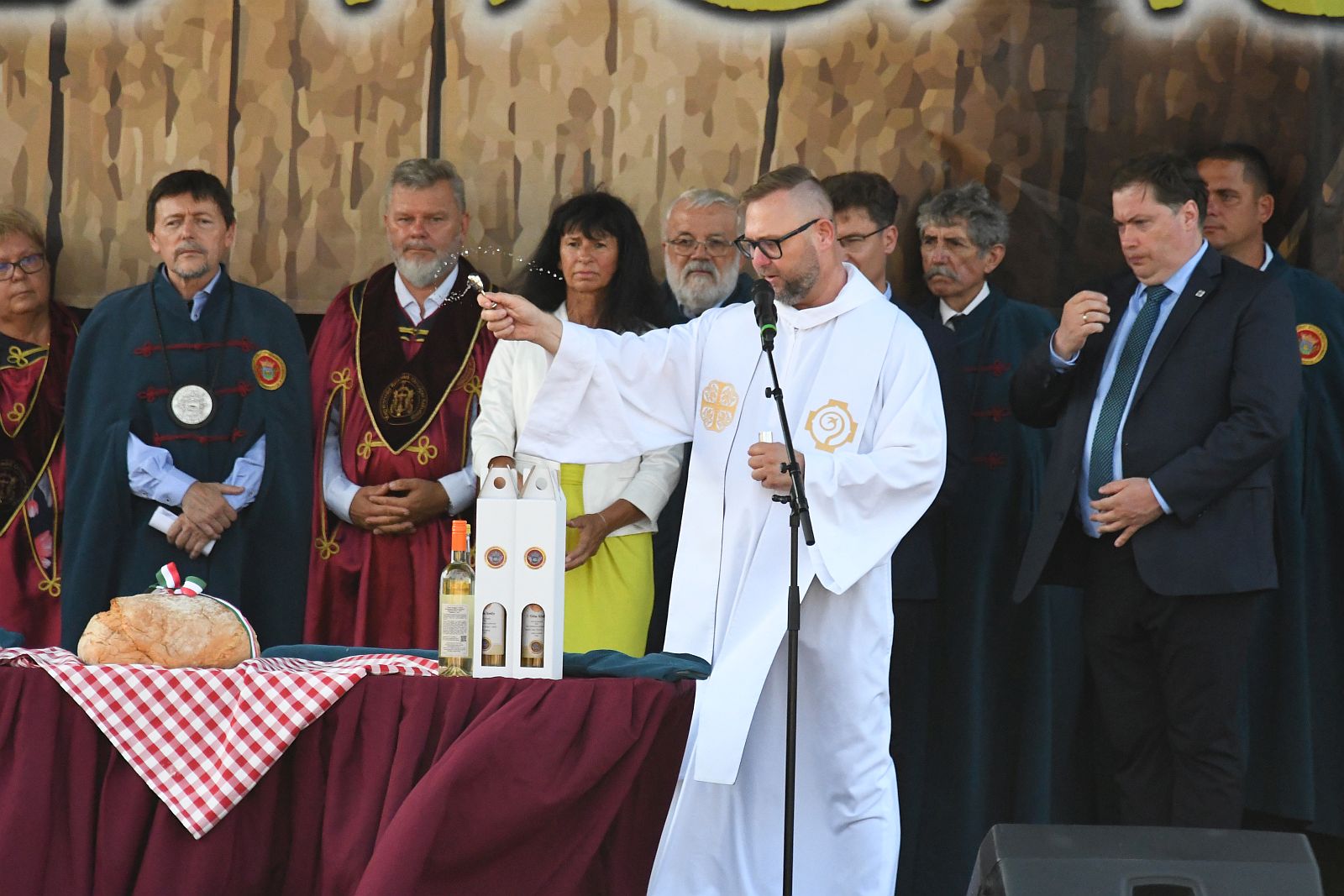Dinnyés Ferenc, a Noé-hegyi Szent István Borlovagrend elnök-nagymestere köszöntőjében arról beszélt, hogy 22. alkalommal kapcsolódtak a színpadi programokhoz. Az idei alkalom kivételes, hiszen eddig csak a vármegyei borrendeket látták vendégül, idén azonban összekötötték a programot a Kárpát-medencei borrendek országos találkozójával, melyhez 34 borlovagrend csatlakozott hazánkból és a határon túlról.