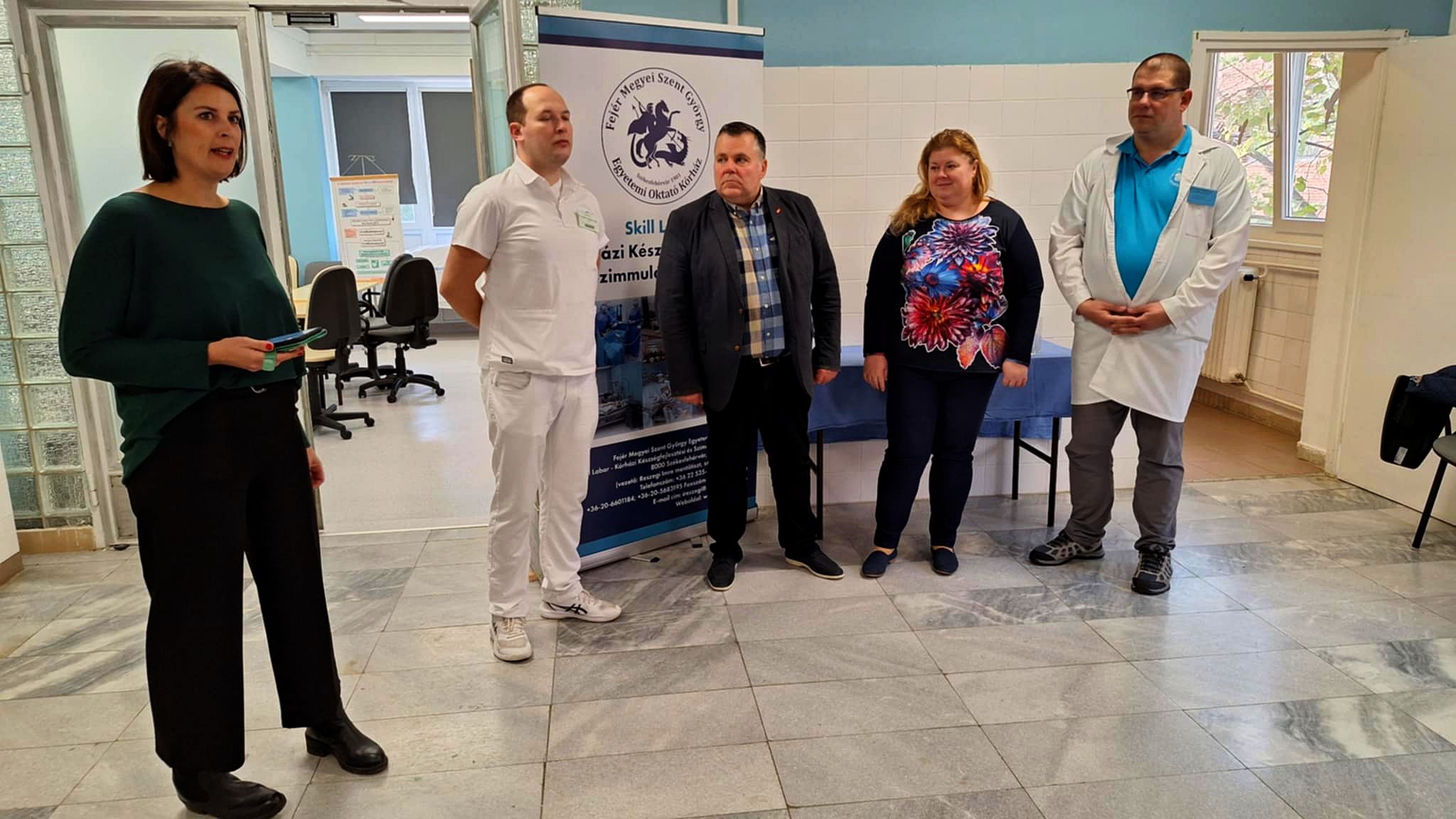 Reszegi Imre, a Skill laboratórium vezetője elmondta, hogy amikor a kórház skill laboratóriumát kialakították konzorciumi partnerségben egy EFOP pályázat keretében, akkor rengeteg felszerelés került hozzájuk, de a hétköznapokat szolgáló terület kimaradt a fejlesztésből, úgyhogy konyhájuk egészen idéig "a retro világot idézte". Hozzátette, hogy most a Makita Kft-vel való együttműködésnek köszönhetően meg tudott újulni ez is, az itt dolgozók örömére.