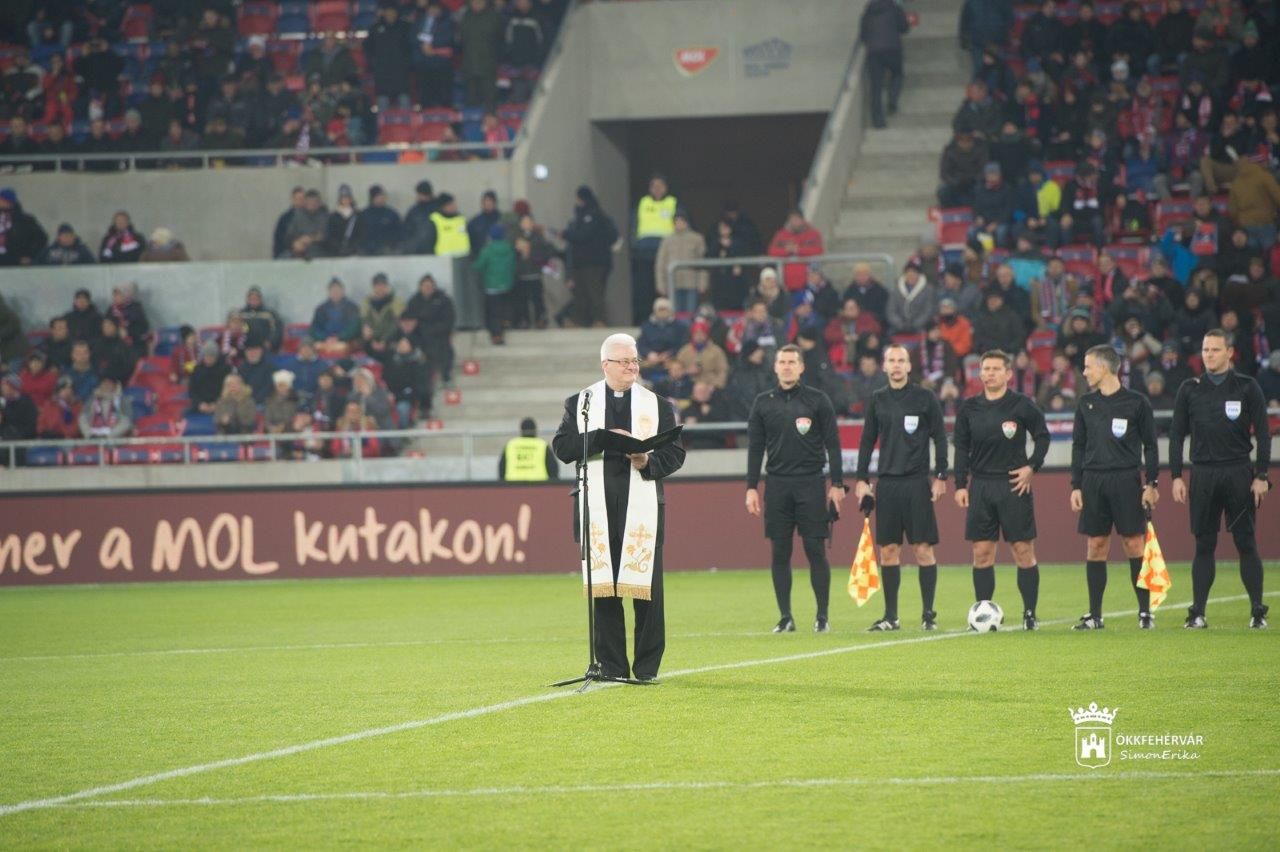 A fociünnepnek ünnepélyes keretet adtak a szervezők, hiszen Spányi Antal megyéspüspök most áldotta meg az új stadiont, miután elhangzott a Himnusz is.
