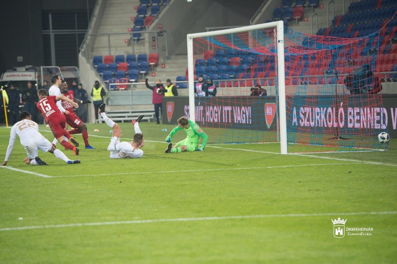 Marko Nikolics tőle szokatlan módon több ponton is változtatott kezdőjén, Scsepovics helyett ezúttal Hodzic került be a csapatba középcsatárként, illetve Pátkai és Kovács is kezdett. Hamar elszabadultak az indulatok, az első negyedórában több Vidi-játékos is kivívta a vendégszurkolók haragját – Kovács István Lovrencsicsre csúszott rá, aki nem is tudta folytatni a játékot. A 15. percben Hadzic bődületes kapufájával riogatott a fehérvári csapat, majd hat perccel később Milanov lövését Dibusz fogta.