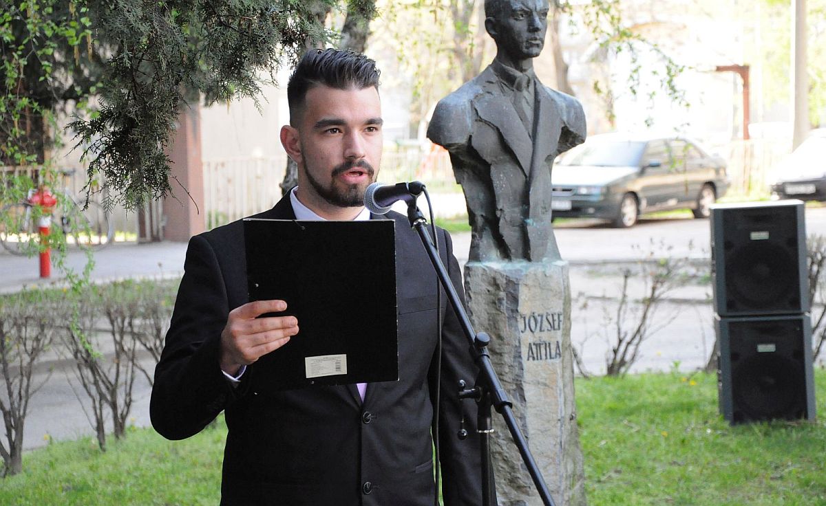 „József Attiláról emlékezünk meg a mai nap során, aki nemcsak az életpályája miatt tiszteletre méltó, hanem azért is, mert élete során adódott akadályok, nehézségek ellenére is törekedett beteljesíteni célját, mely a mai napig felelevenítésre került a magyar irodalomban. Az ő emléke egy szikra bennünk: amikor versei felcsendülnek a magyarok ajkán, lángra kapnak, és akkor érezzük át igazán, hogy ki volt ő.” – mondta Király Kristóf. Végül az ünnepélyes koszorúzásra került sor az intézmény előtti parkban. Az eseménydús hét programjai a kollégium színháztermében tartott JAK-Bulival zárulnak.