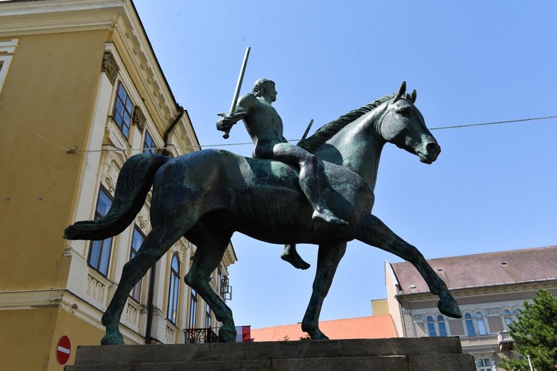 Méltatlan rongálás történt a Városház téri lovasszobron