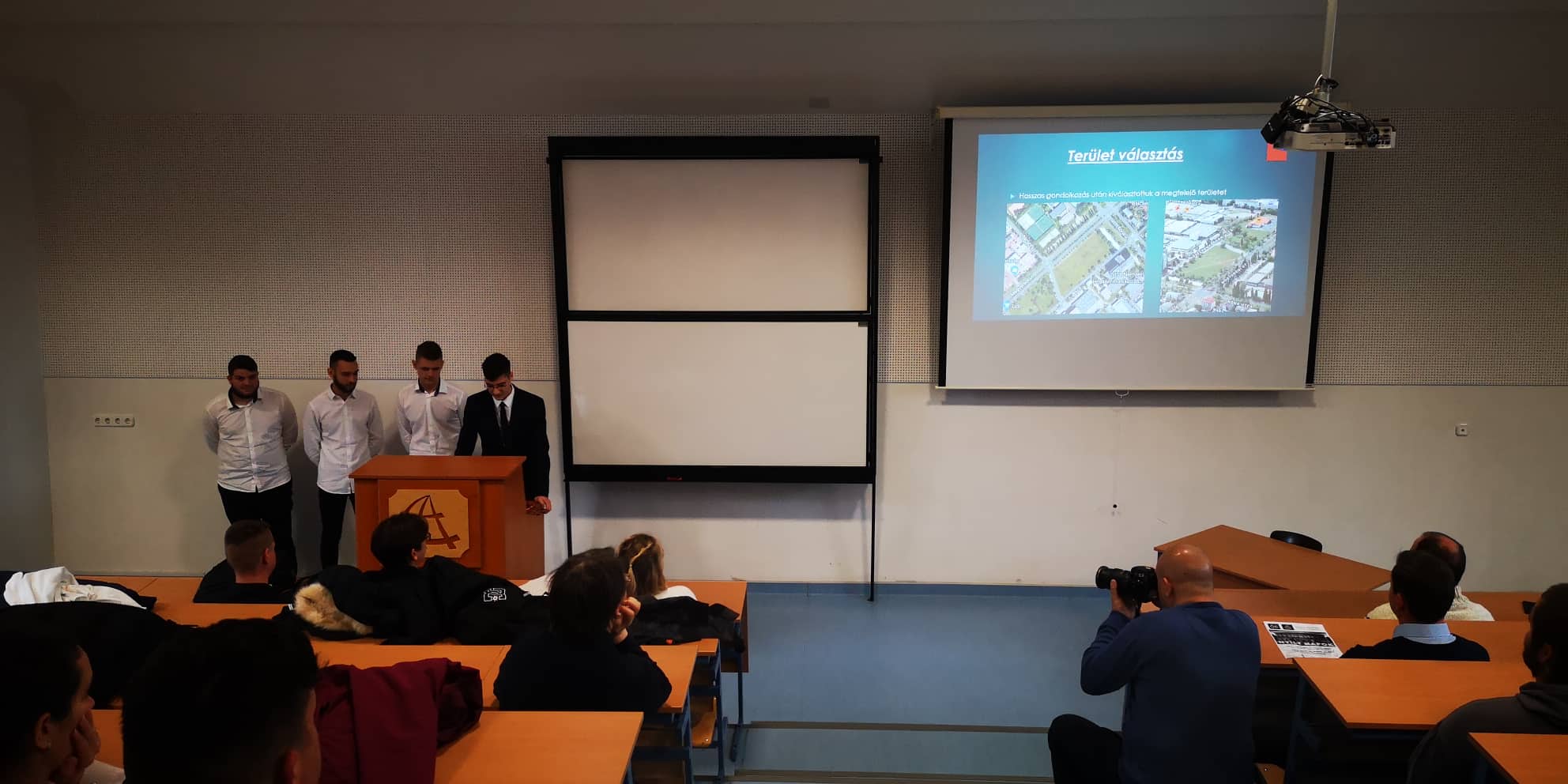 Az egyik budapesti csapat prezentál az Óbudai Egyetem Geoinformatikai Intézetének Mérd meg, mutasd meg! című versenyén.