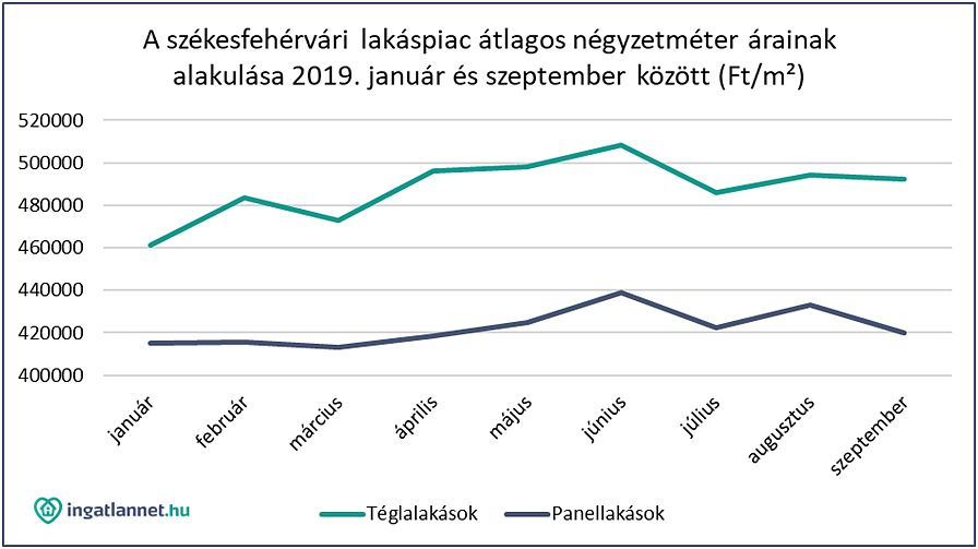 Fehérváron a téglalakások januári 460 ezer Ft/m²-es átlagára szeptemberre 490 ezer Ft/m²-re duzzadt. Amennyiben a székesfehérvári panellakásokat tekintjük, az átlagos négyzetméter árak stagnáltak, 420 ezer Ft/m² körül alakultak az idei év januári és szeptemberi hónapjai között.
