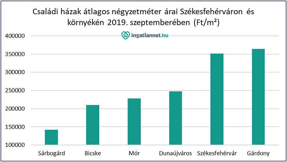 Székesfehérváron a családi házak lényegesen olcsóbbnak mutatkoztak a lakásoknál idén szeptemberben. A vizsgálat alá vont települések közül Gárdonyban is a székesfehérvárihoz hasonlóan alakultak a házak átlagos négyzetméter árai.